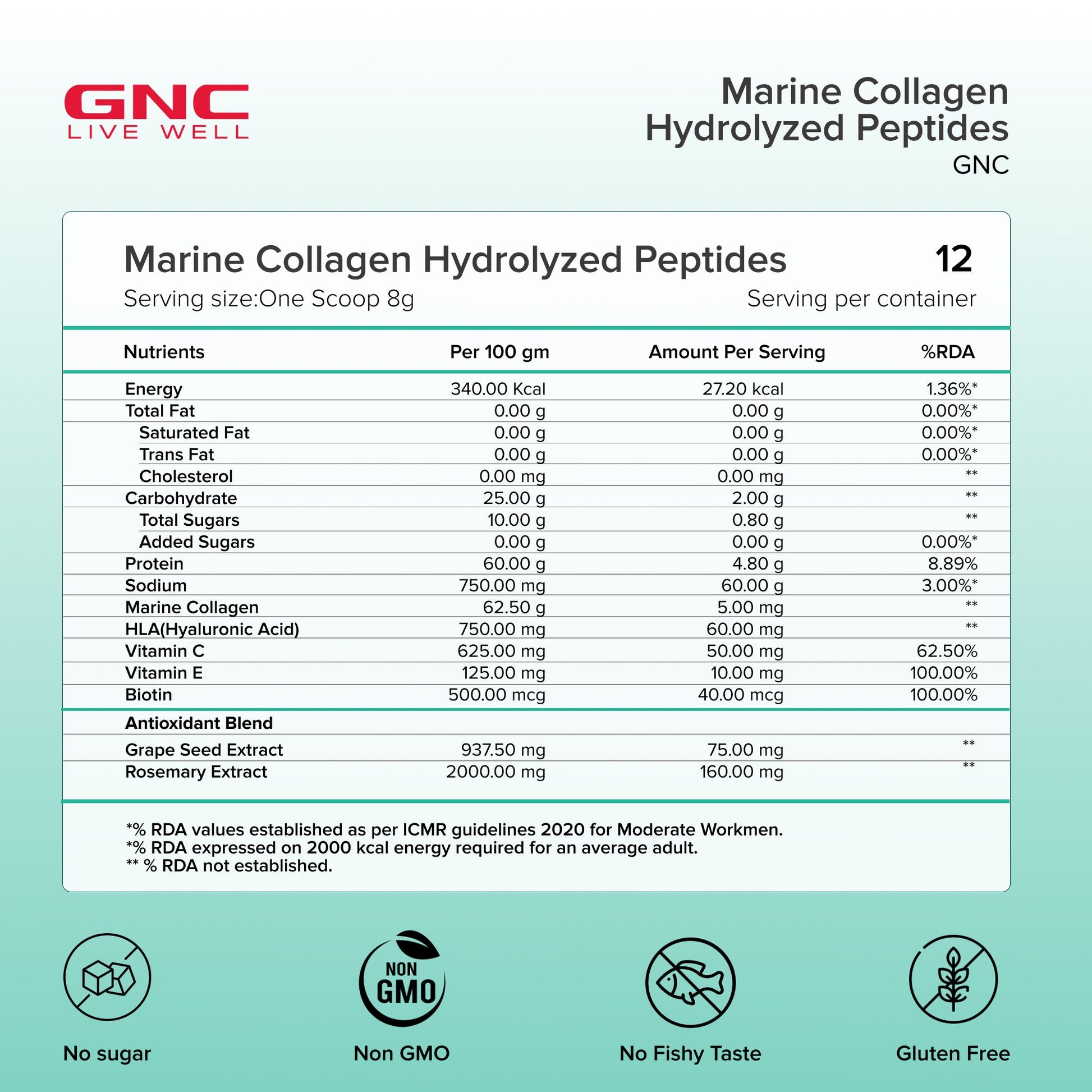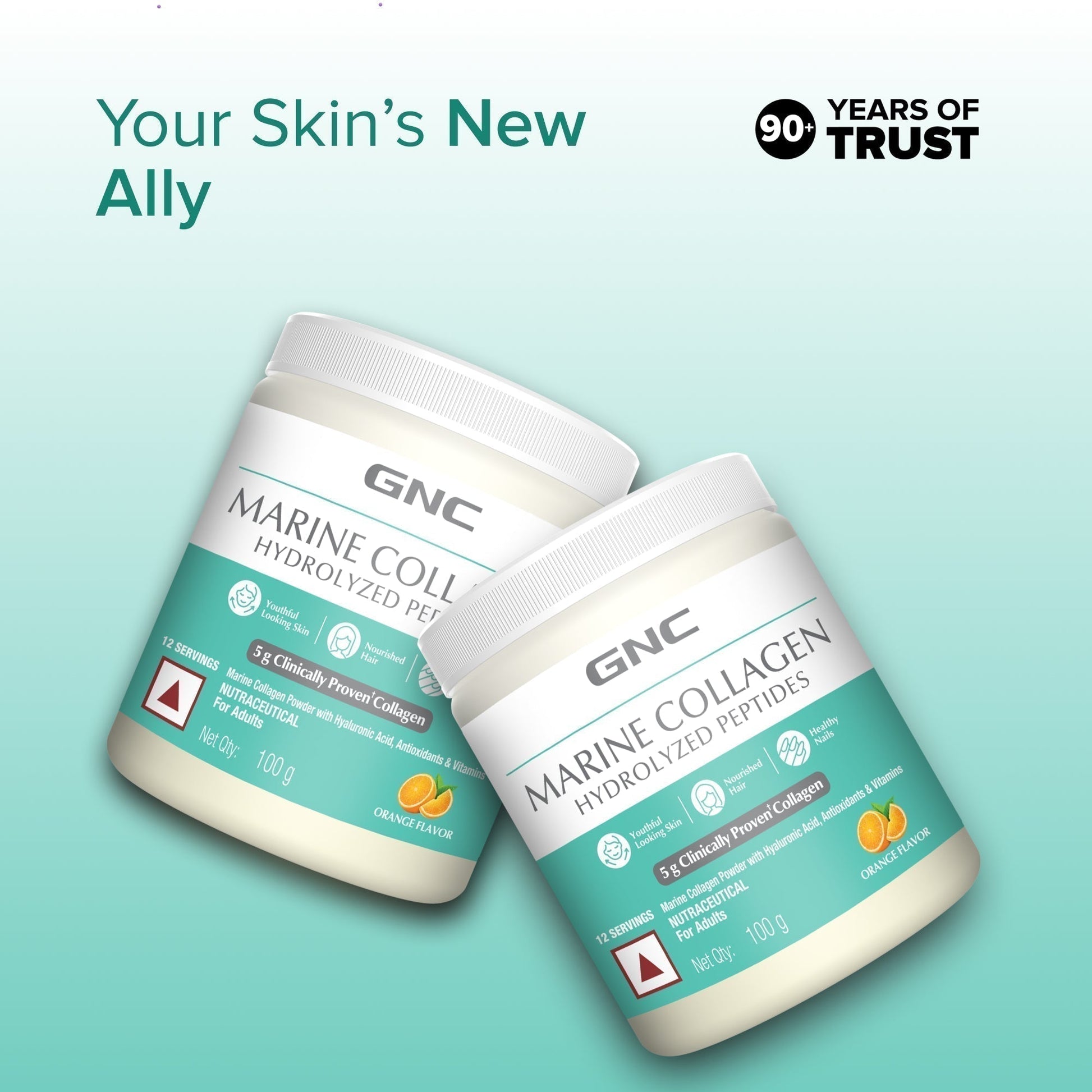 GNC Marine Collagen | 100 Gm (Pack of 2) | Type 1 & Type 3 Collagen | Hydrolyzed Peptides |Hyaluronic Acid|Biotin |Vitamin C &E |Grape Seed Extract |Rosemary Extract |For Radiant & Youthful Skin