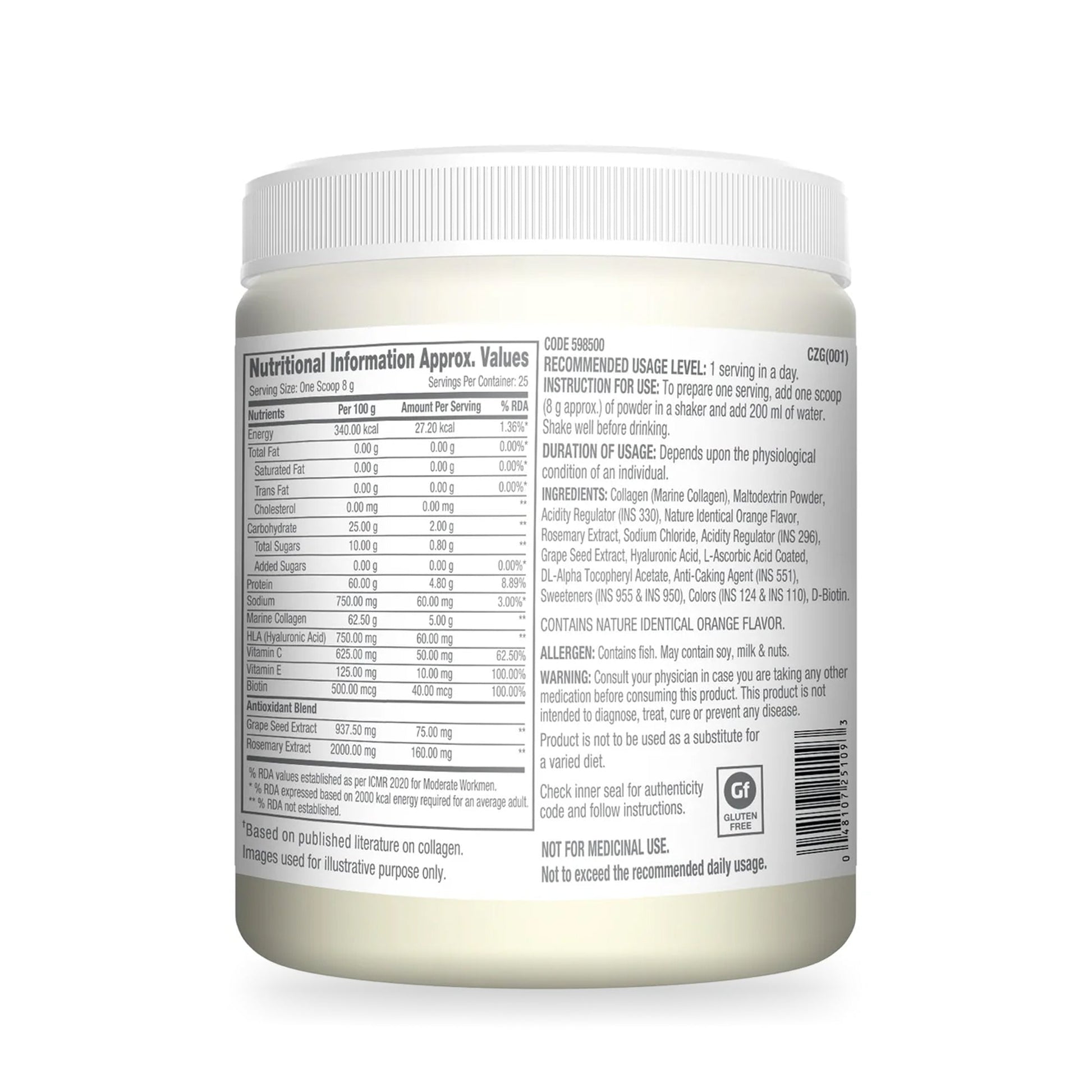 GNC Marine Collagen |200 Gm | | For Radiant & Youthful Skin | Healthy Skin, Hair & Nails | Formulated In USA + Bottle