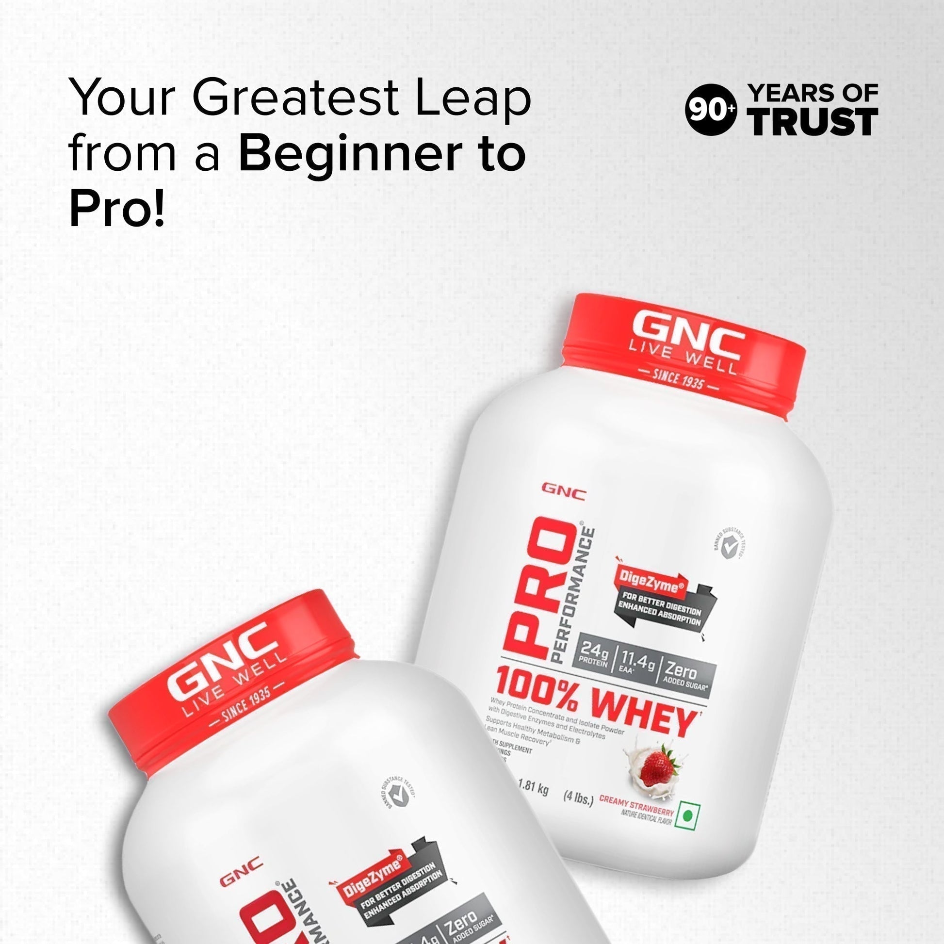 GNC Pro Performance 100% Whey Protein Powder | Boosts Strength & Endurance | Builds Lean Muscles | Fastens Muscle Recovery | Formulated In USA | 24g Protein | 5.5g BCAA | Creamy Strawberry | 4 lbs