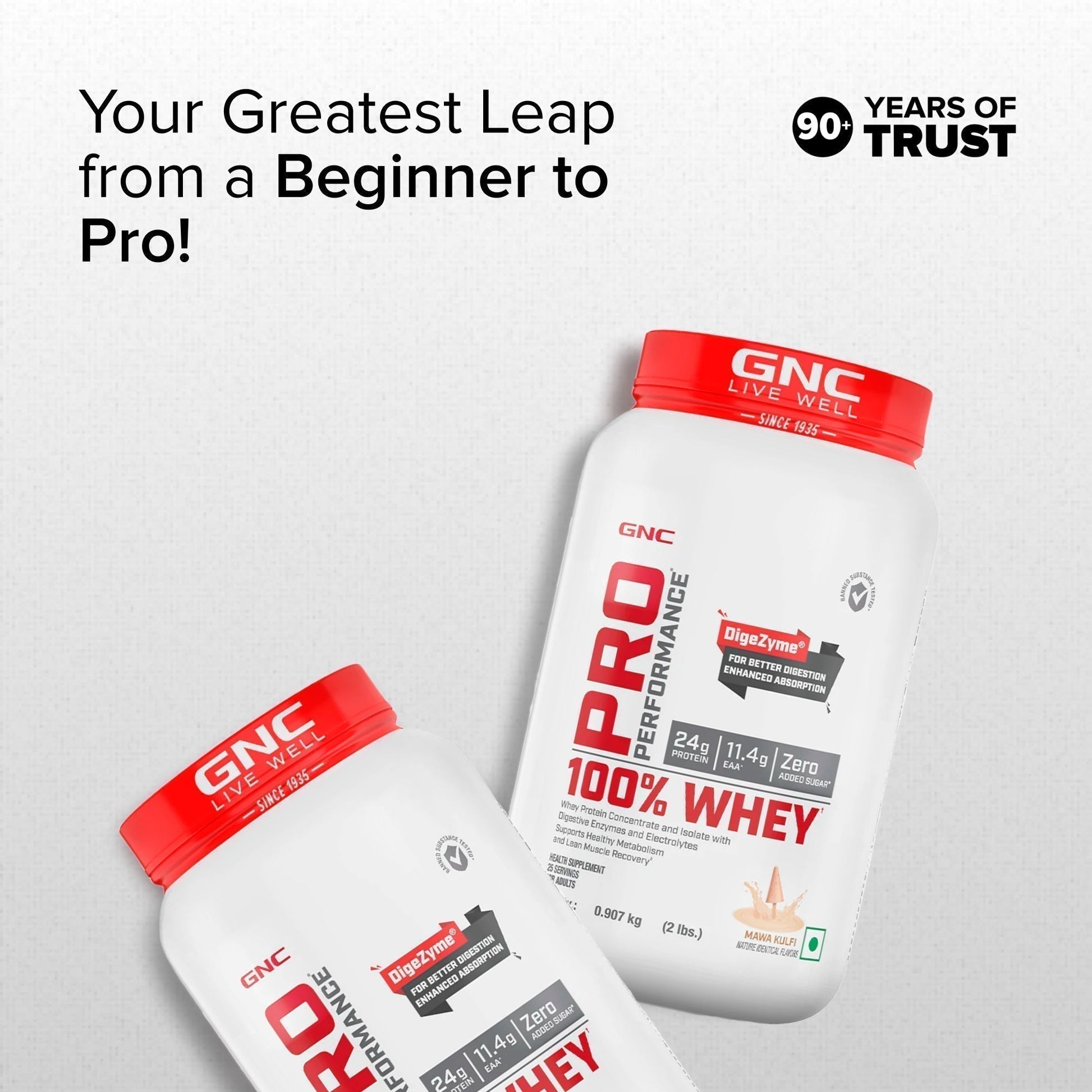 GNC Pro Performance 100% Whey Protein Powder | Boosts Strength & Endurance | Builds Lean Muscles | Fastens Muscle Recovery | Formulated In USA | 24g Protein | 5.5g BCAA | Mawa Kulfi | 2 lbs