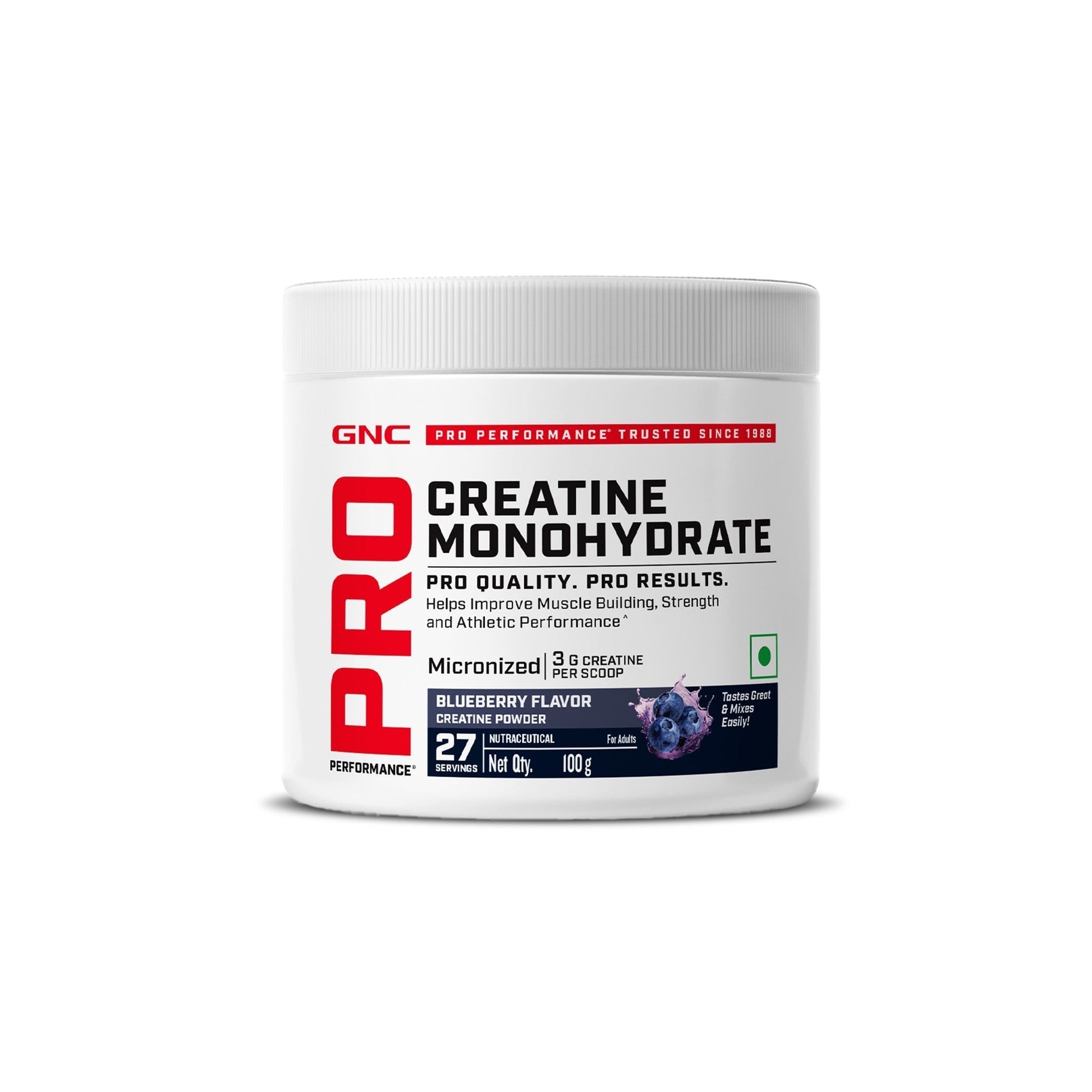 GNC Pro Performance Creatine Monohydrate | 100 gm | Boosts Athletic Performance | Micronized & Instantized | Fuels Muscles | Provides Energy Support for Heavy Workout | Blueberry