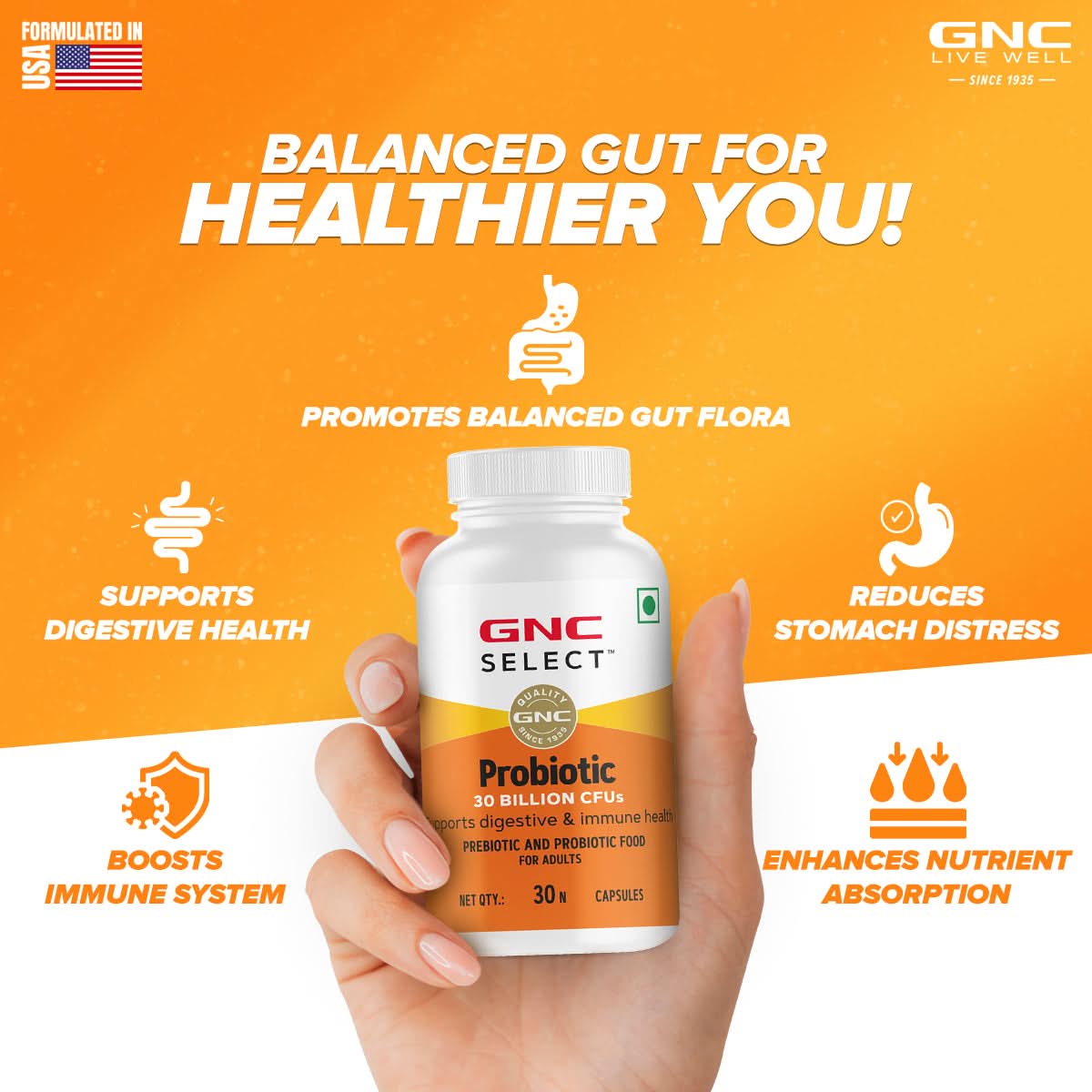 Experience the powerful gut health trio! GNC Select Probiotics (30 Billion CFUs) with prebiotic Inulin promotes digestion, immunity & a balanced gut. Shop now