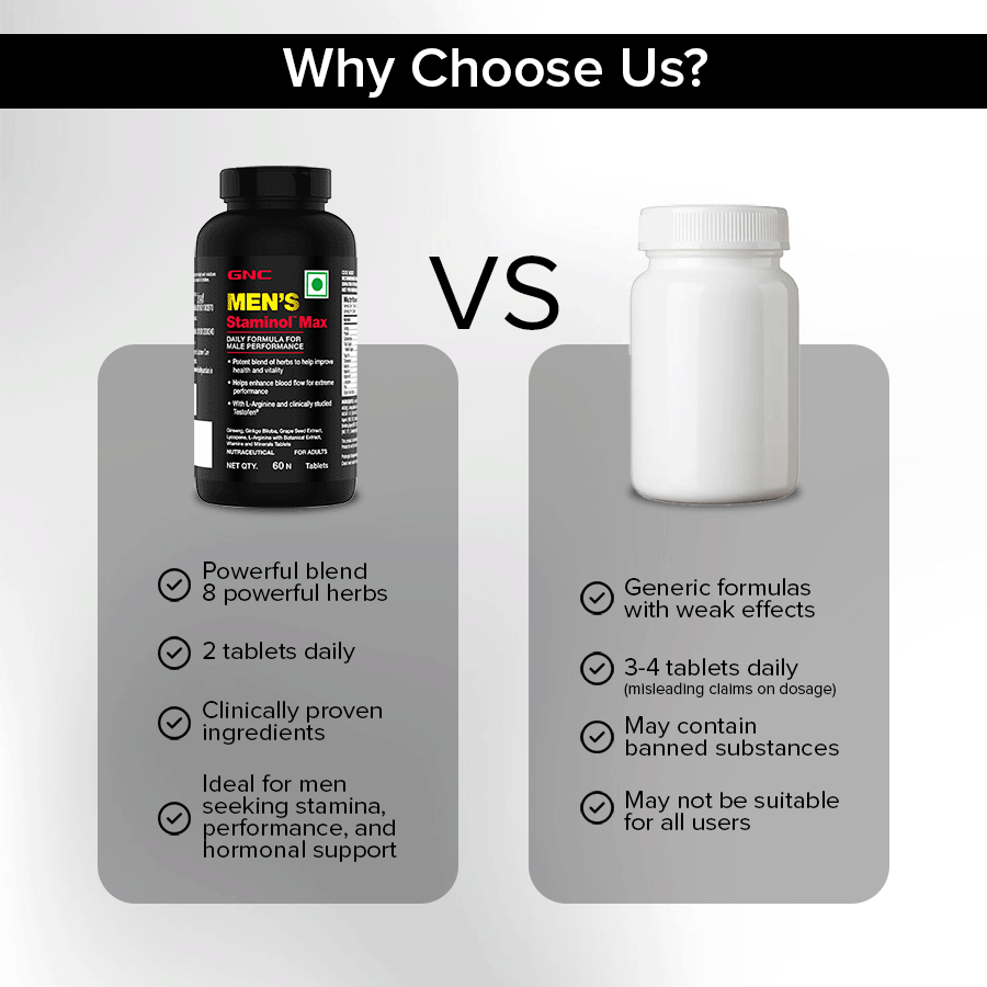 GNC Staminol Max for Men | Blend of 8 Super Herbs With Testofen | Boosts Testosterone | Harder & Longer Sessions | Improves Stamina, Vitality & Performance | Supports Sexual Health | 60 Veg Tablets