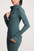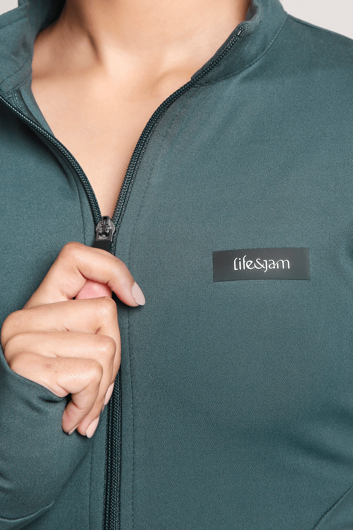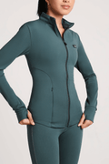 Why You NEED This: A jacket that moves with you. The Good Girl Code Jacket is sleek, sculpting, and built for high-impact workouts and beyond. With a compressive fit, built-in thumbholes, and two zippered pockets, it keeps you supported and hands-free. Made from our custom Free Fit fabric, it’s quick-drying, breathable, and non-sticky, perfect for Indian heat & humidity.
