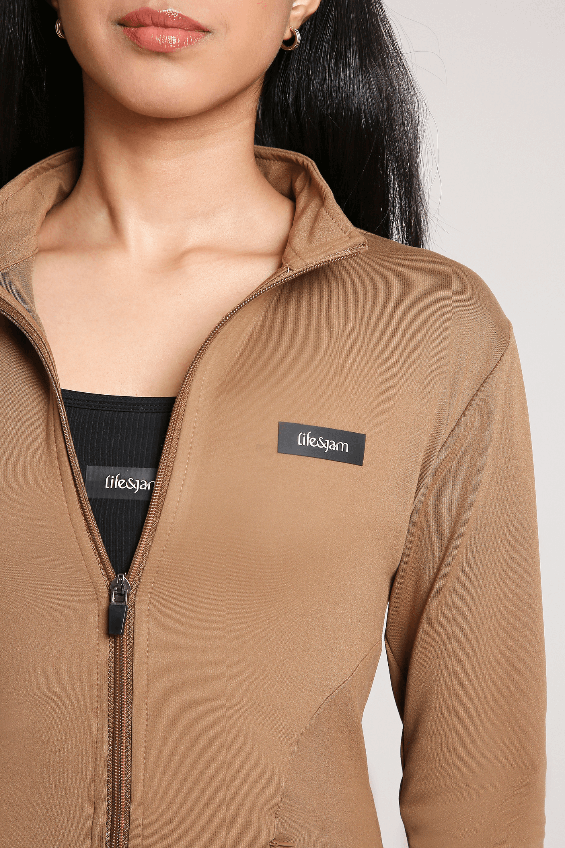 Why You NEED This: A jacket that moves with you. The Good Girl Code Jacket is sleek, sculpting, and built for high-impact workouts and beyond. With a compressive fit, built-in thumbholes, and two zippered pockets, it keeps you supported and hands-free. Made from our custom Free Fit fabric, it’s quick-drying, breathable, and non-sticky, perfect for Indian heat & humidity.