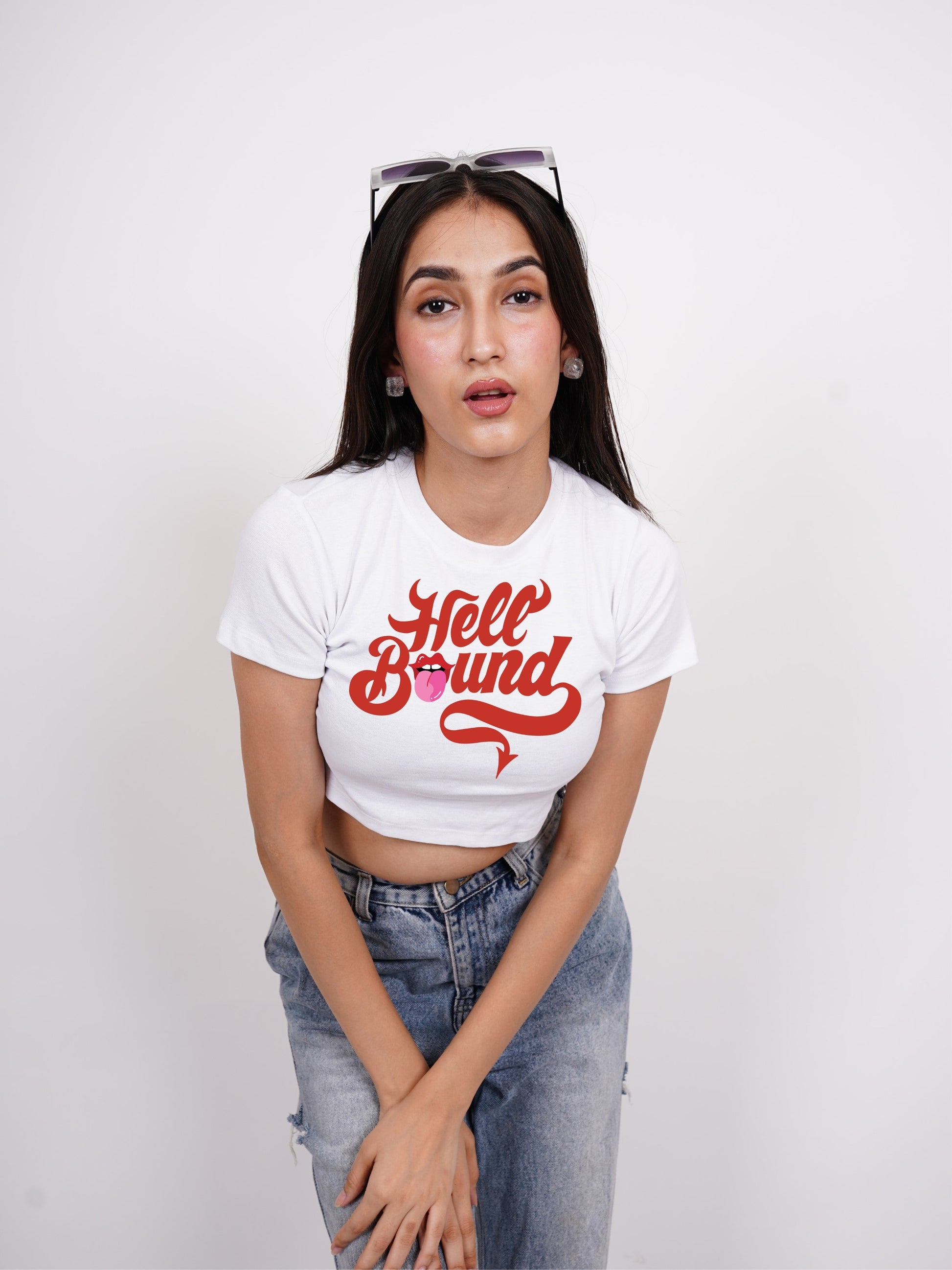 Hell Bound : Burger Bae Round Neck Crop Baby Tee For Women