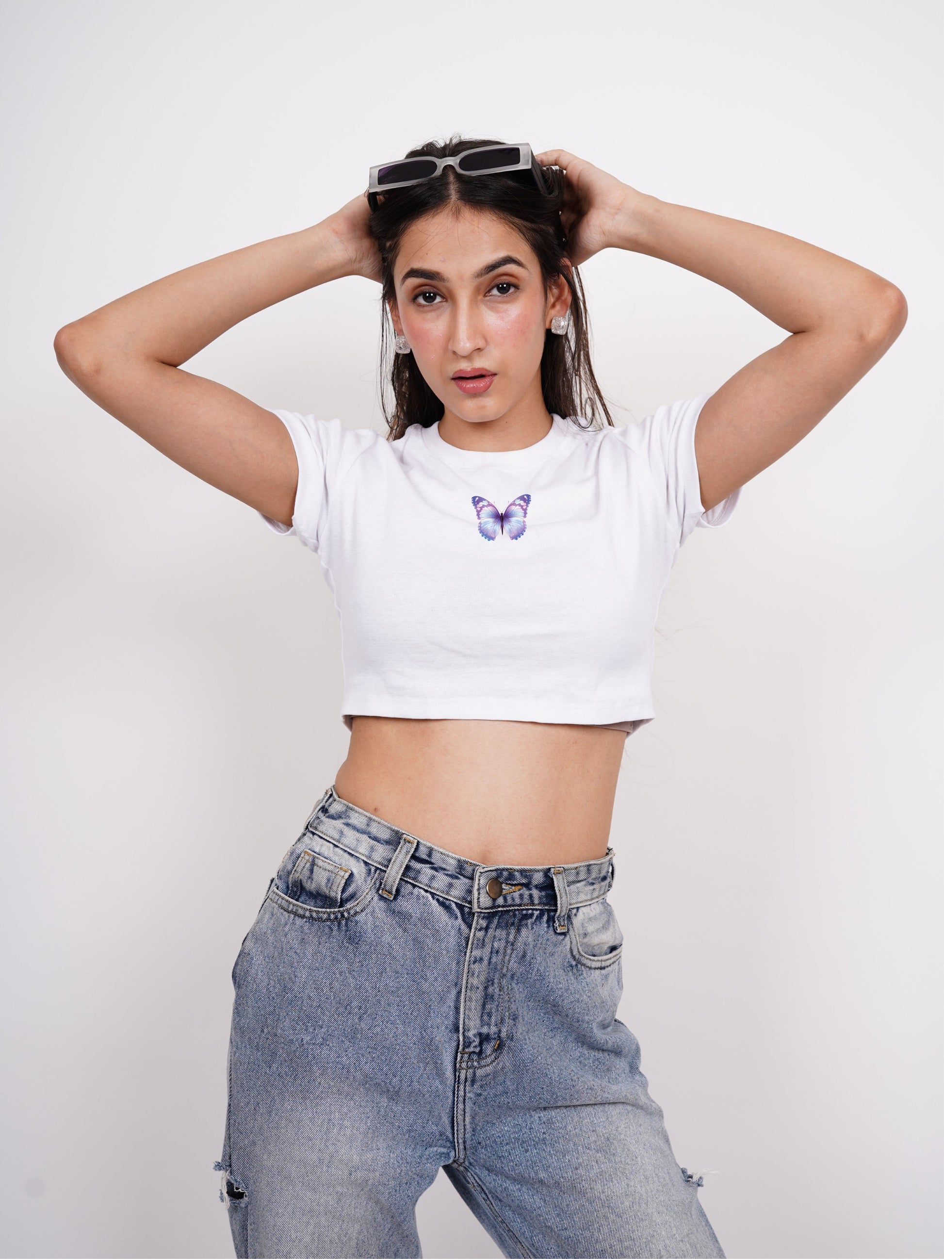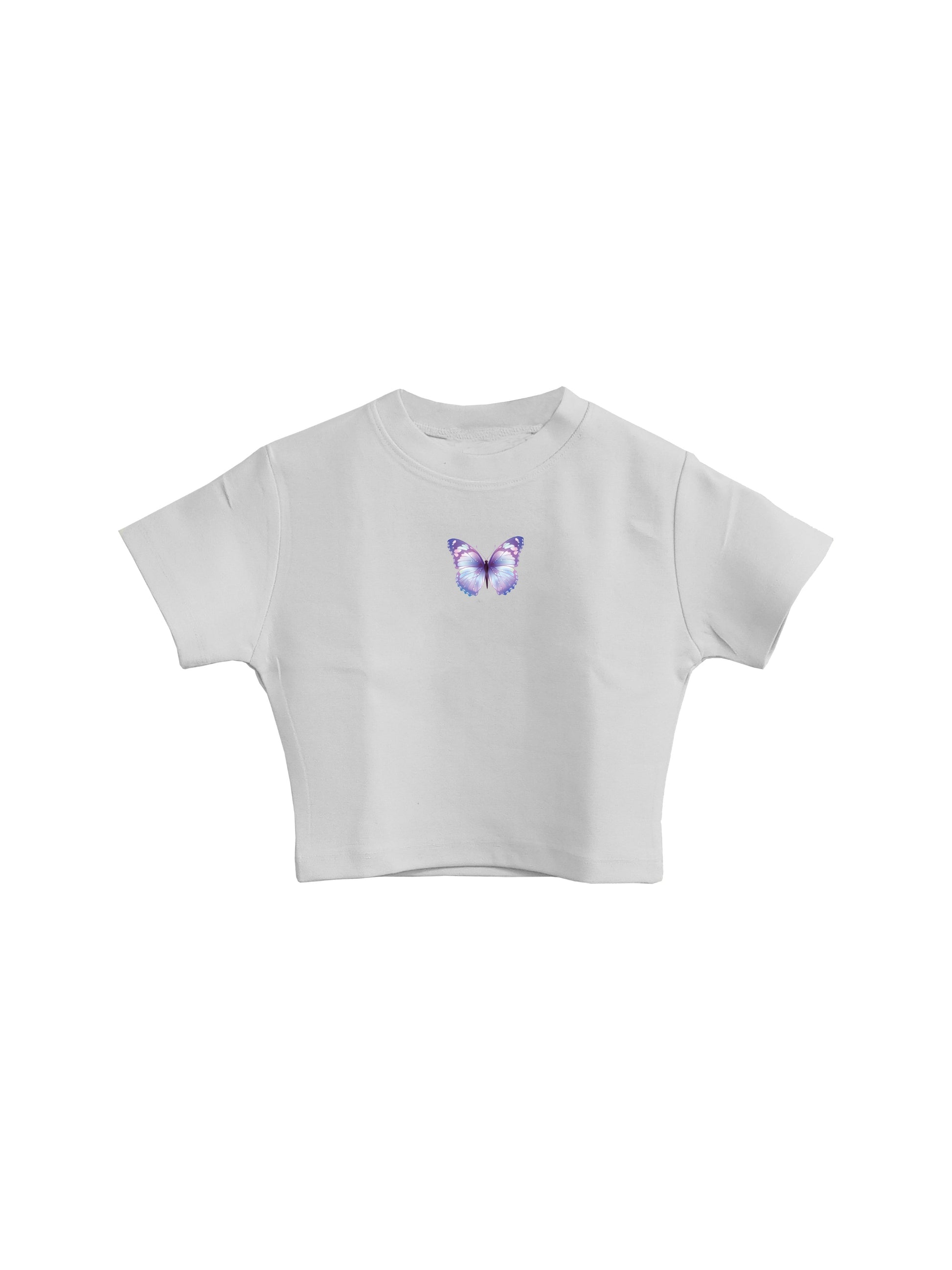 Holly Blue Butterfly : Burger Bae Round Neck Crop Baby Tee For Women