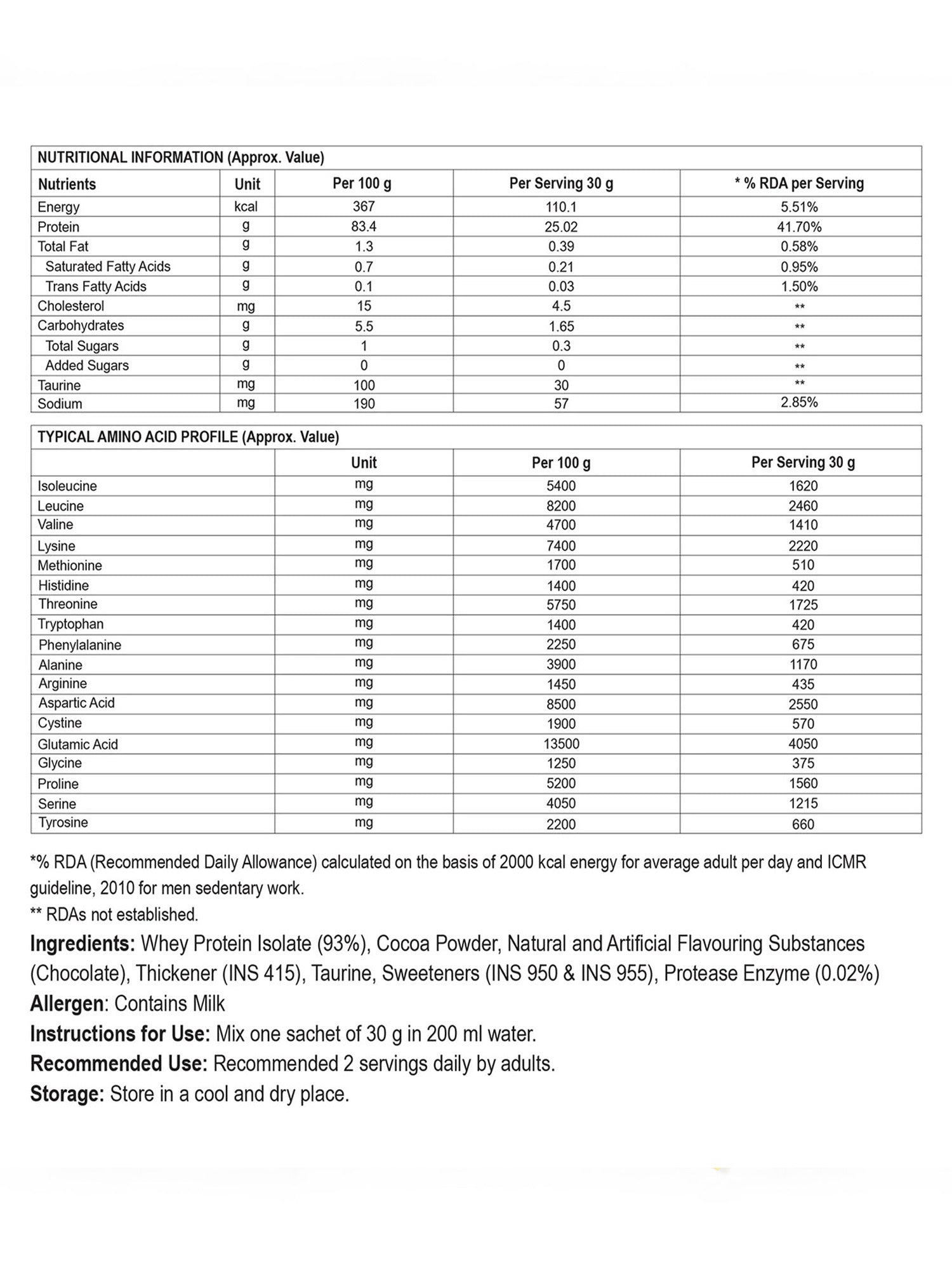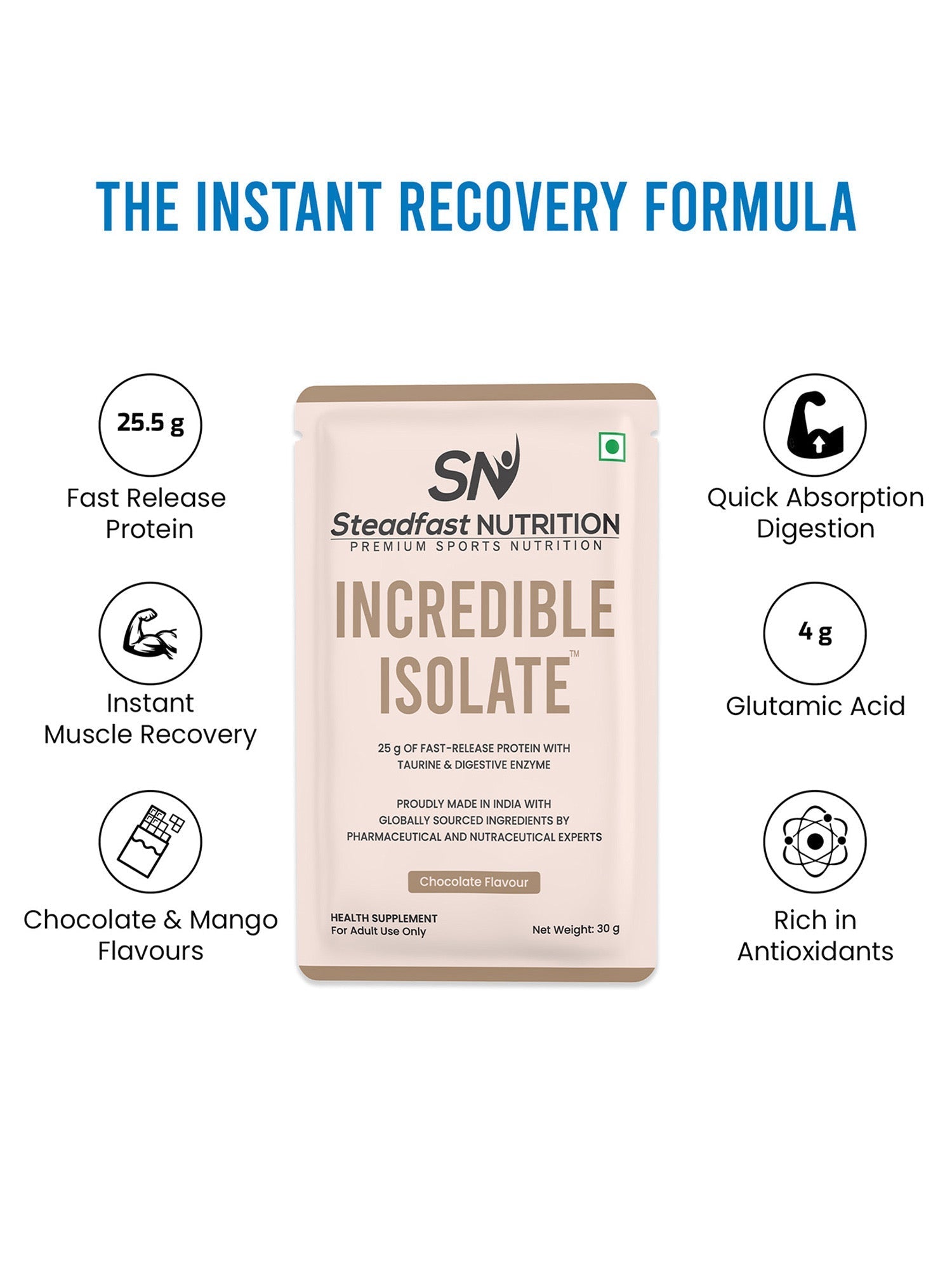 Incredible Isolate Whey Protein Blend Instant Recovery Chocolate 30 Sachets 900g