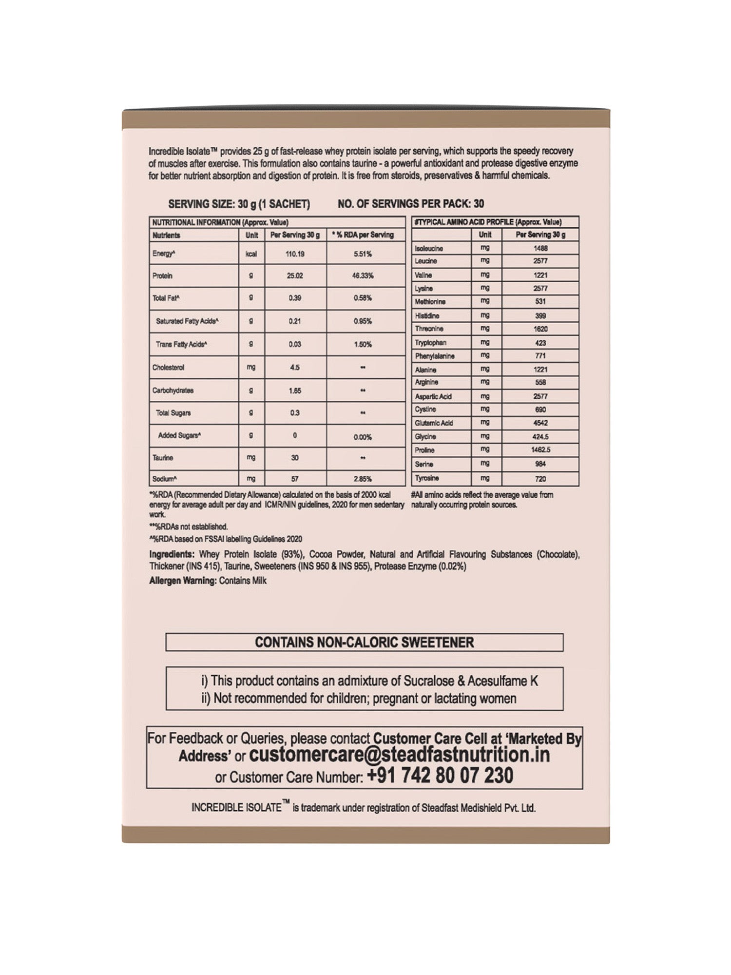 Incredible Isolate is a low-carbohydrate and-fat formulation containing high-quality isolate protein, taurine, and digestive enzyme for quick muscle recovery by athletes and fitness enthusiasts.