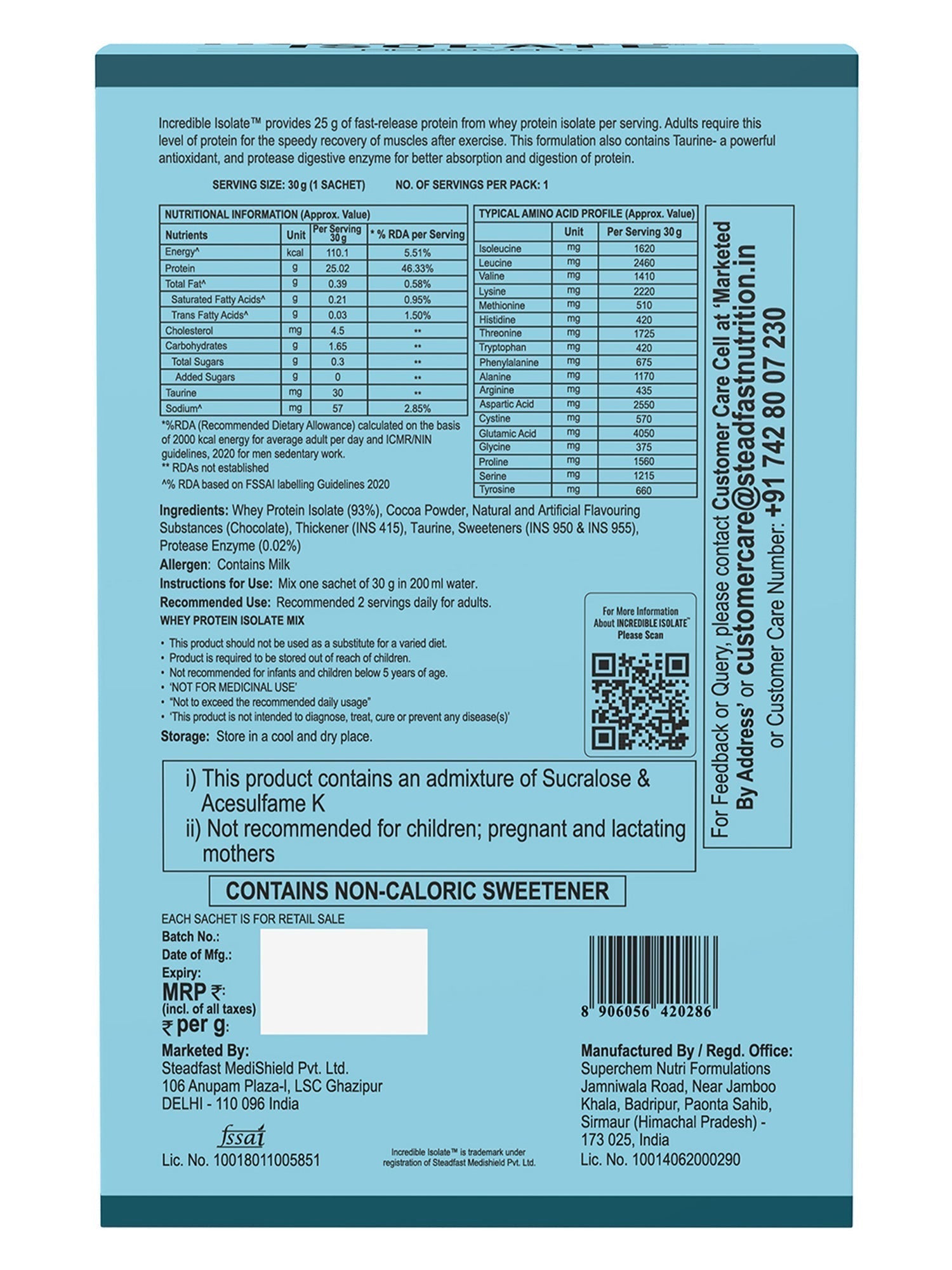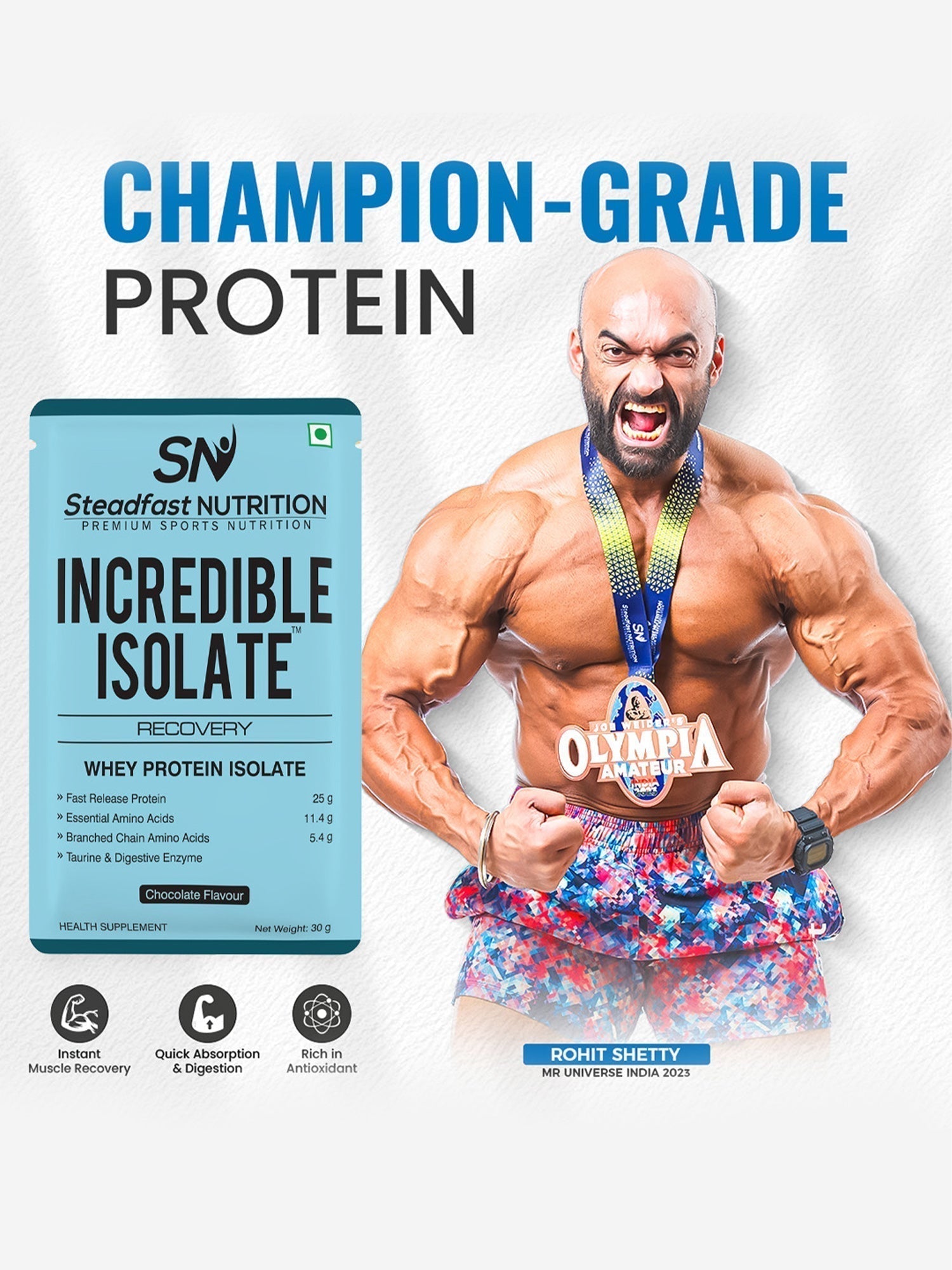 Incredible Isolate is a low-carbohydrate and-fat formulation containing high-quality isolate protein, taurine, and digestive enzyme for quick muscle recovery by athletes and fitness enthusiasts.