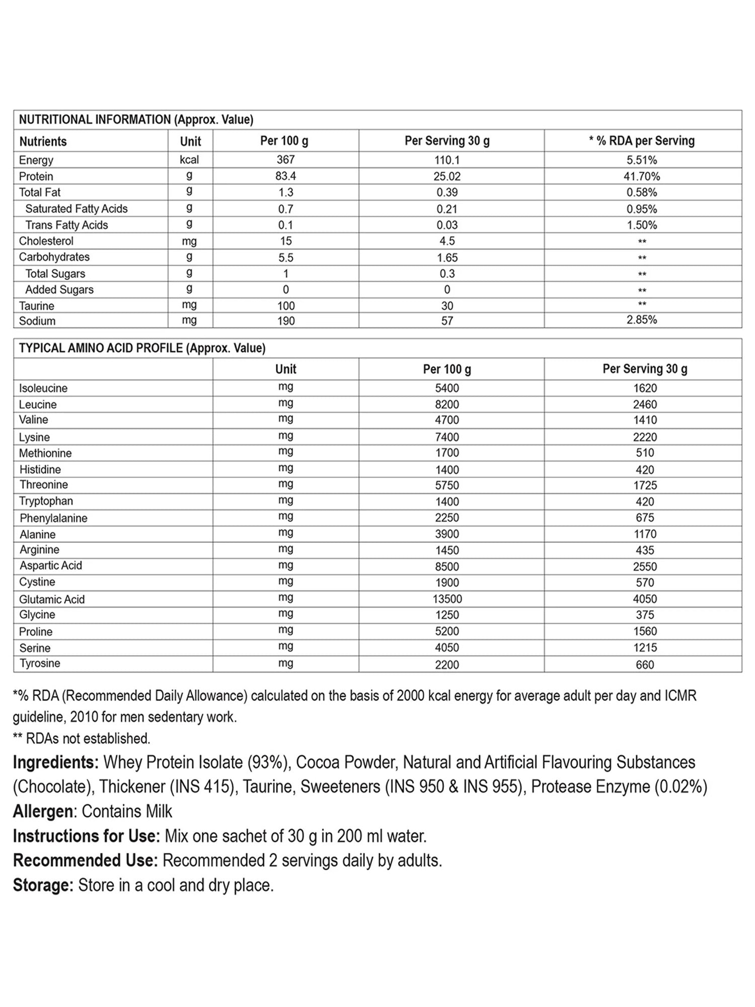Incredible Isolate Whey protein Blend The Instant Recovery Chocolate 6 Sachets 180g