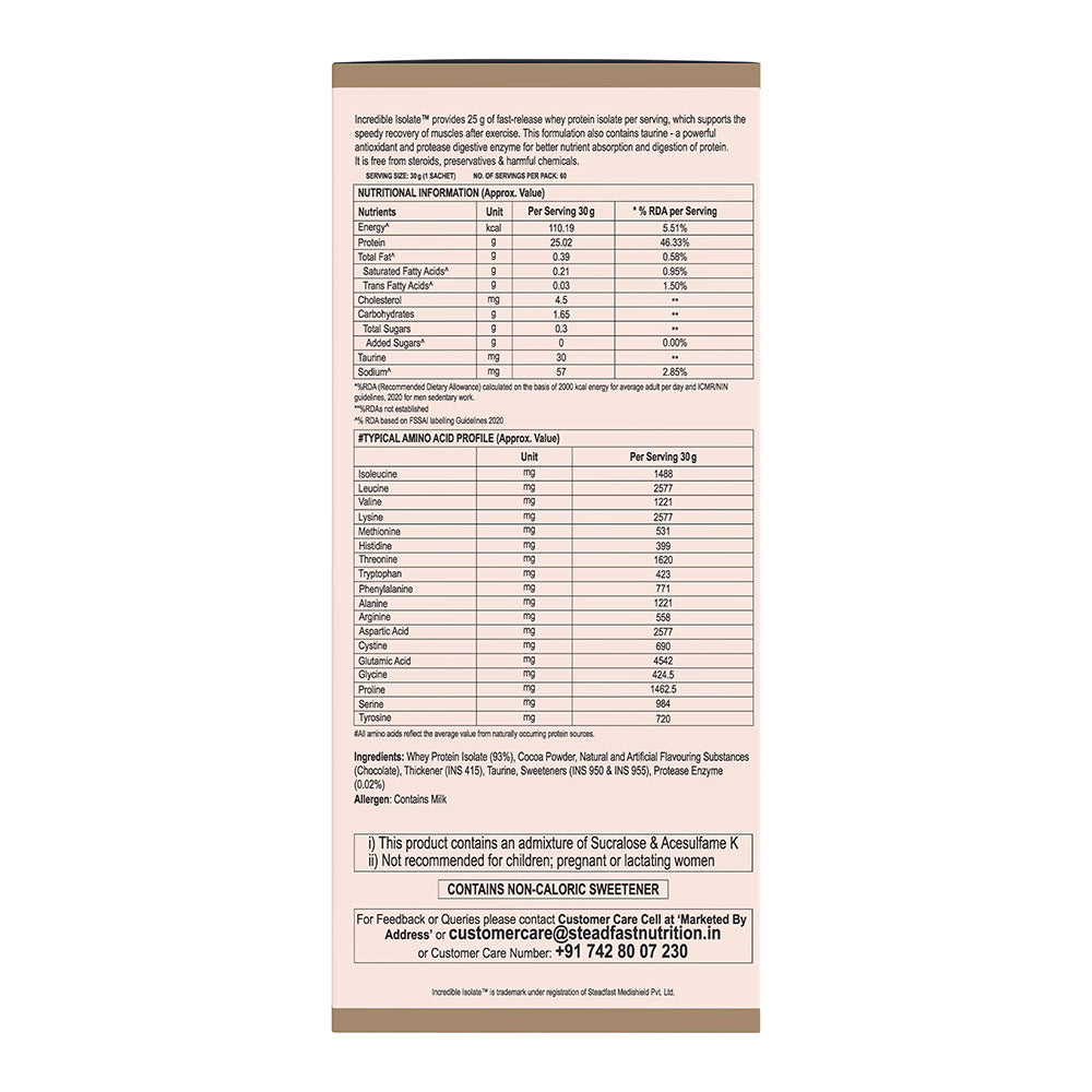 Incredible Isolate is a low-carbohydrate and-fat formulation containing high-quality isolate protein, taurine, and digestive enzyme for quick muscle recovery by athletes and fitness enthusiasts.