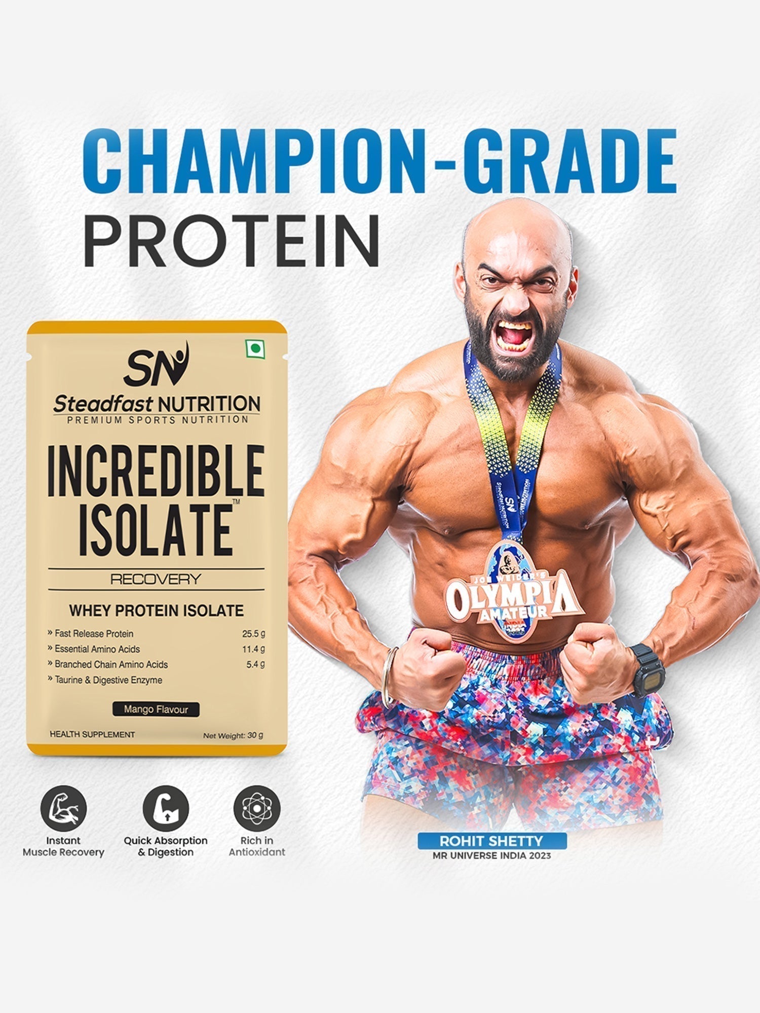 Incredible Isolate is a low-carbohydrate and-fat formulation containing high-quality isolate protein, taurine, and digestive enzyme for quick muscle recovery by athletes and fitness enthusiasts.