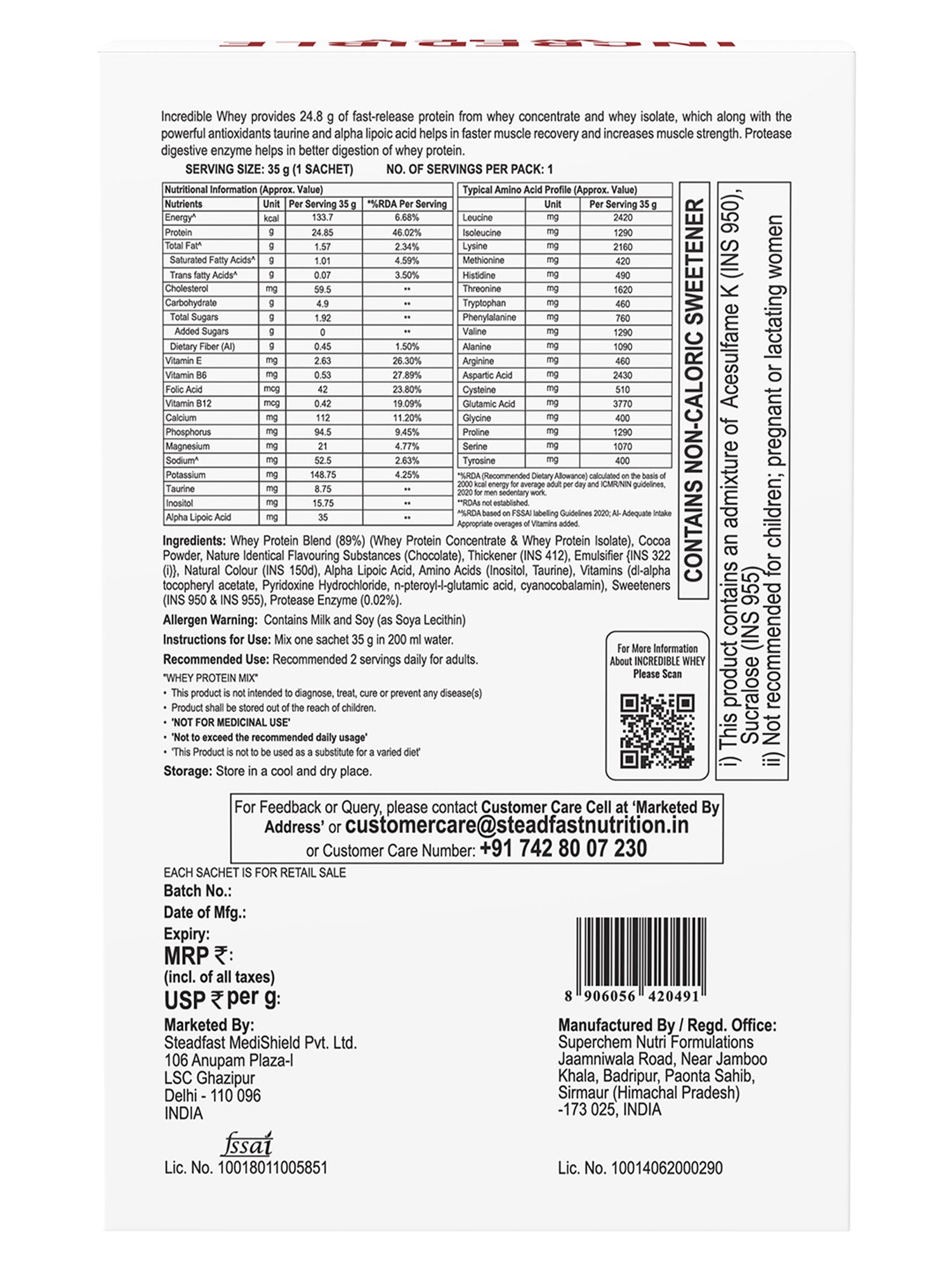Incredible Whey Protein Blend For An Incredible You Chocolate 6 Sachets 210g