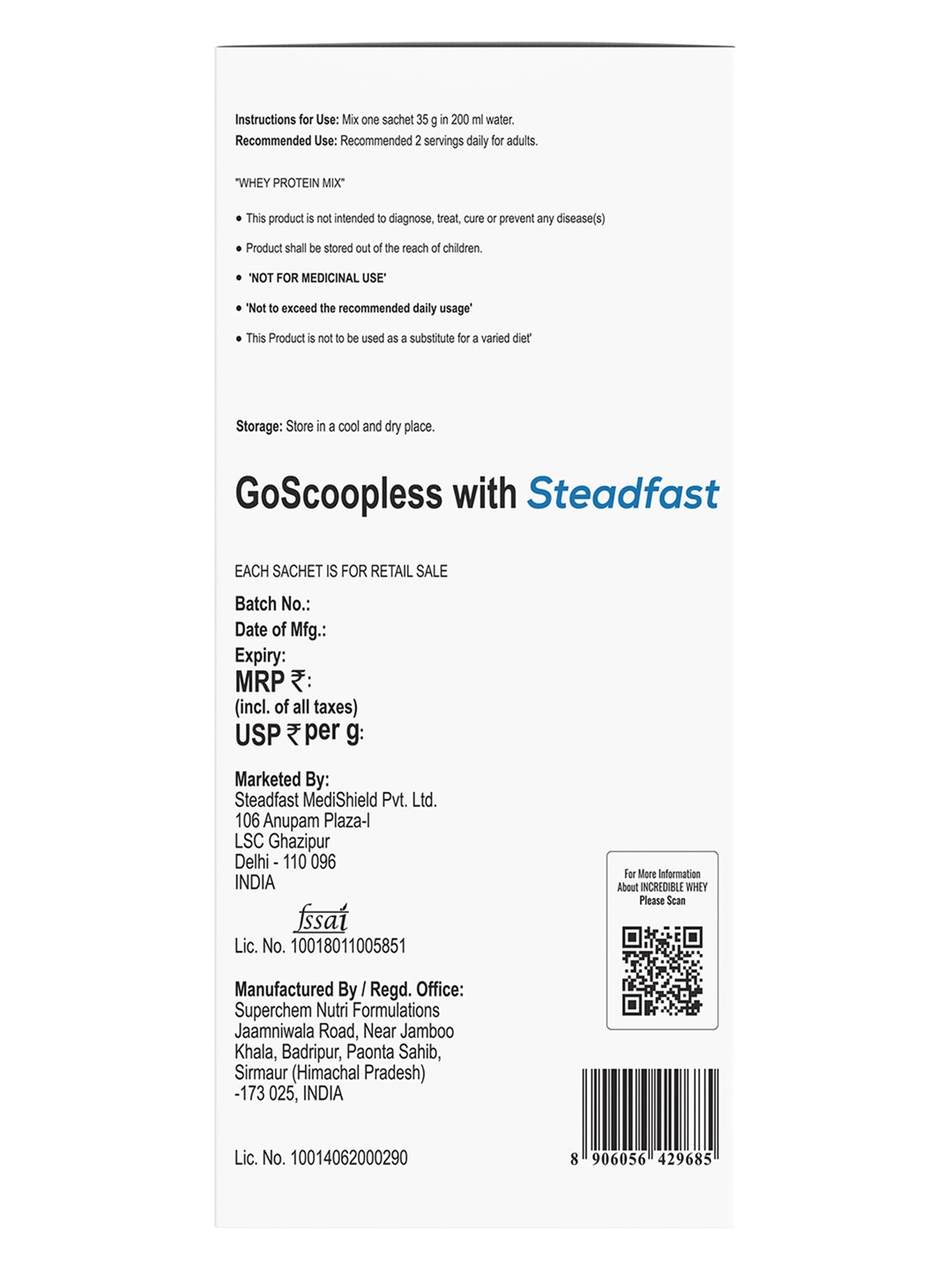 Incredible Whey Protein Blend For An Incredible You Chocolate 60 Sachets 2100g