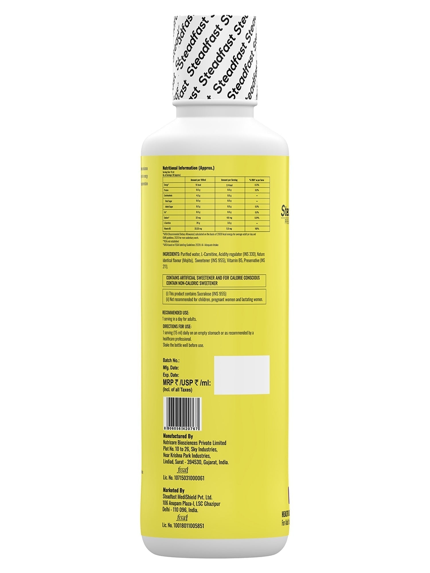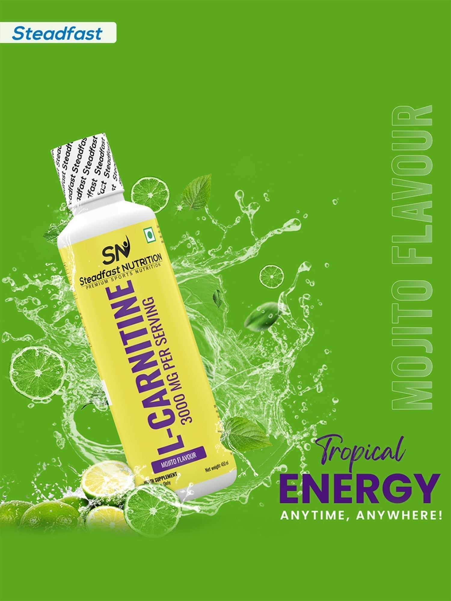Steadfast Nutrition’s L-Carnitine supplement contains 3000 mg of L-Carnitine extract with 5 mg of Vitamin B5 to help you notch up your performance to the next level. L-Carnitine is an amino acid derivative that helps improve exercise performance and endurance and fastens recovery from muscle fatigue after exercise. It plays a crucial role in energy production by oxidising fats to energy for long-duration training; Vitamin