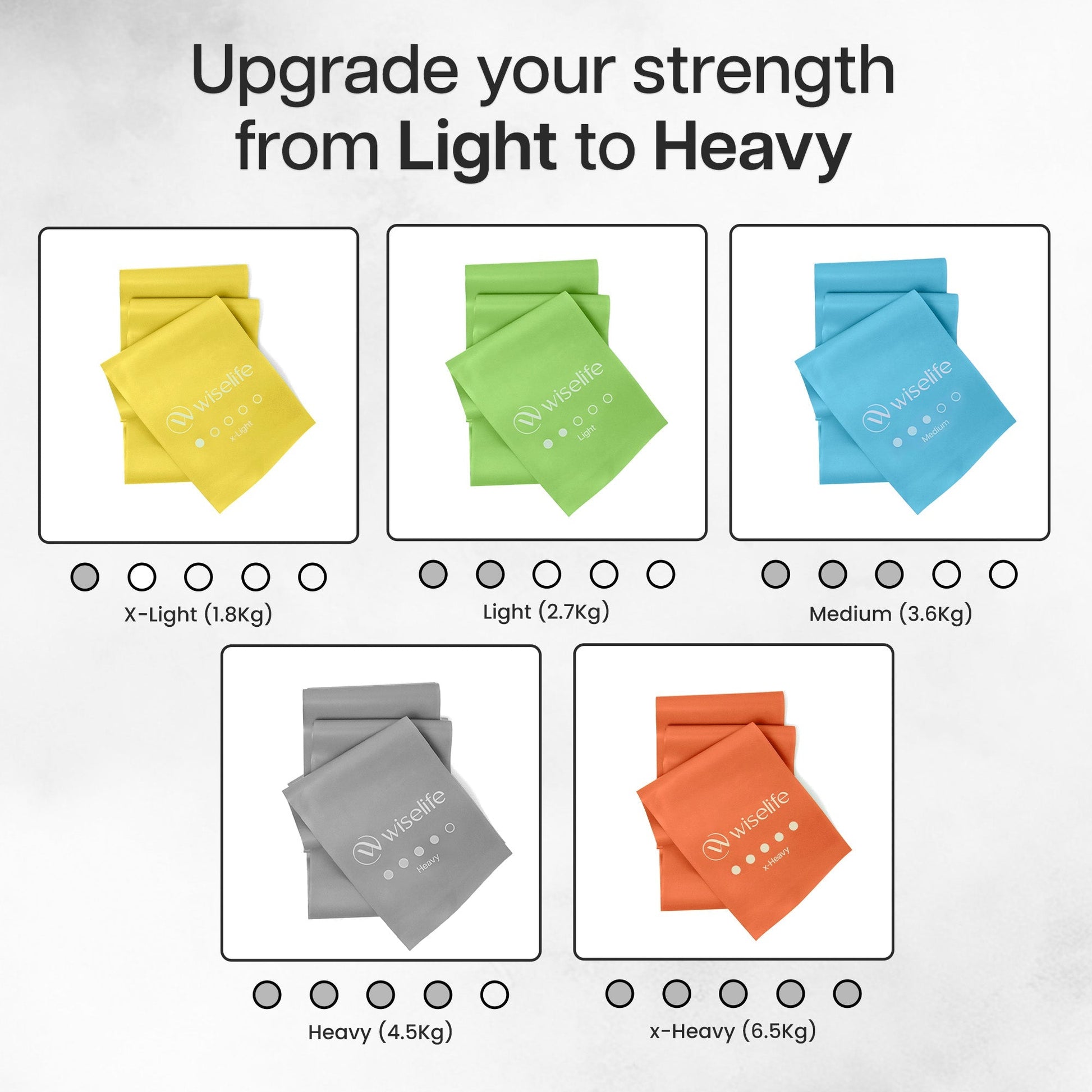 - Each band comes with different range of resistance, so upgrade your strength from light to heavy resistance