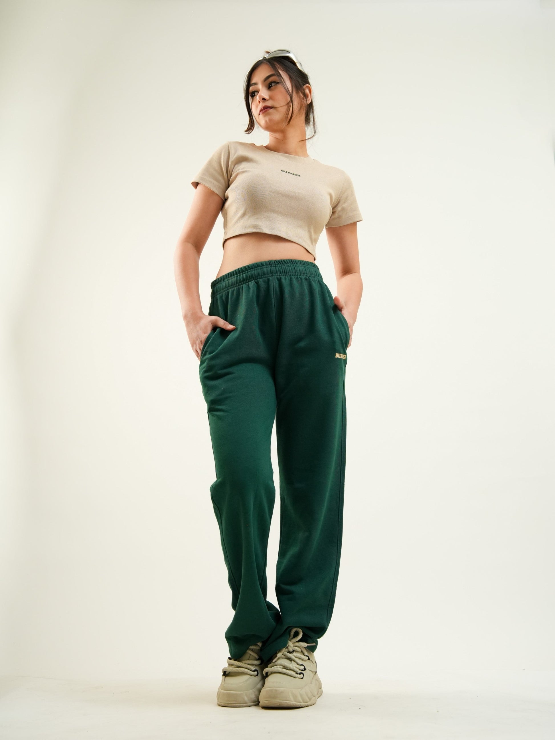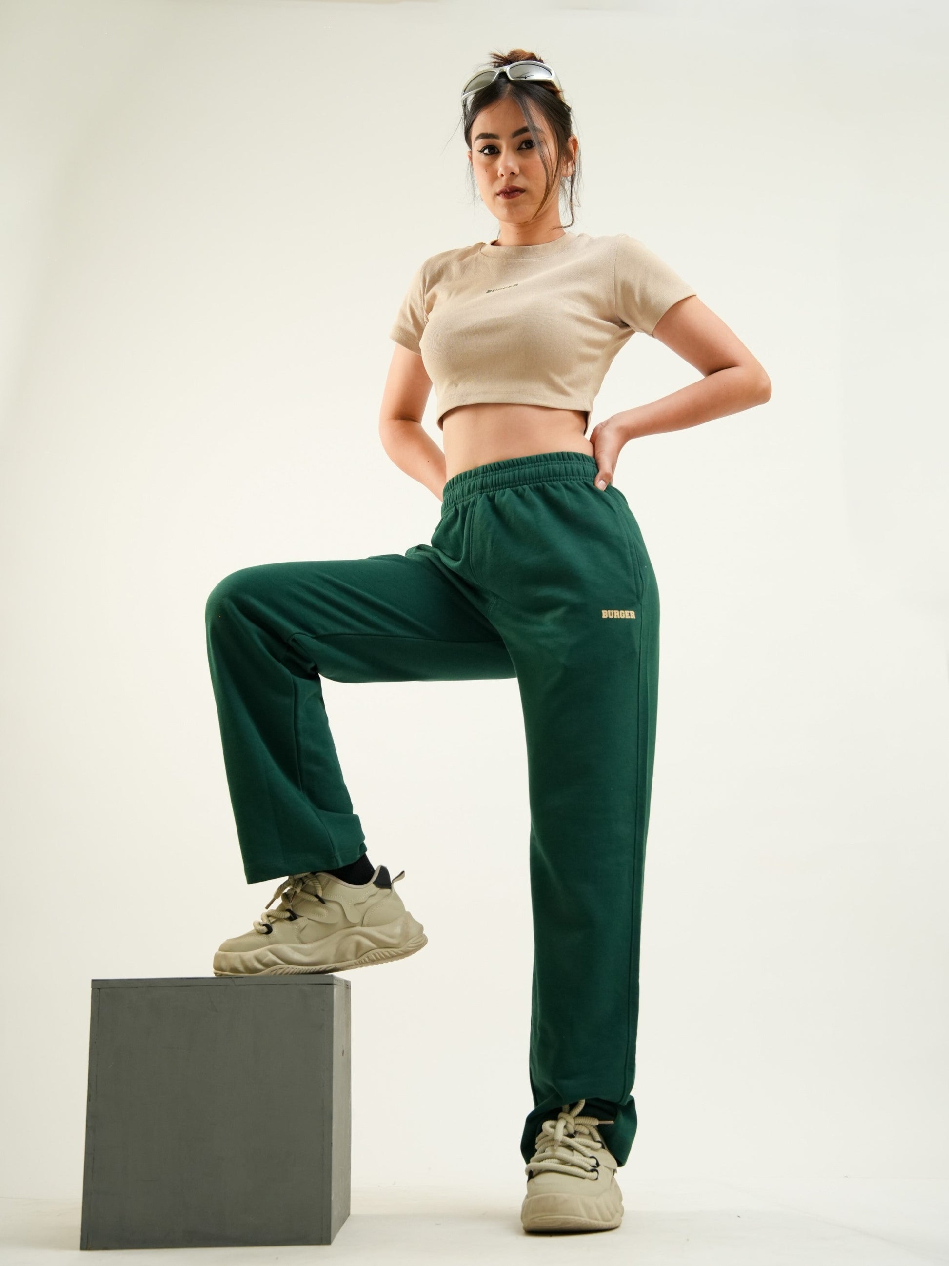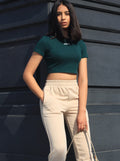 Step into effortless style with the Limited Edition Sydney Set, a perfect fusion of elegance and streetwear edge. This two-piece ensemble features a beige fitted crop top paired with deep forest green wide-leg pants, creating a chic and versatile look for any occasion.