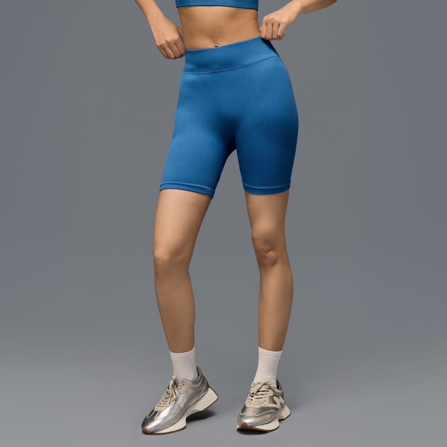 Limitless snatched mid waisted ribbed shorts - Royal Blue