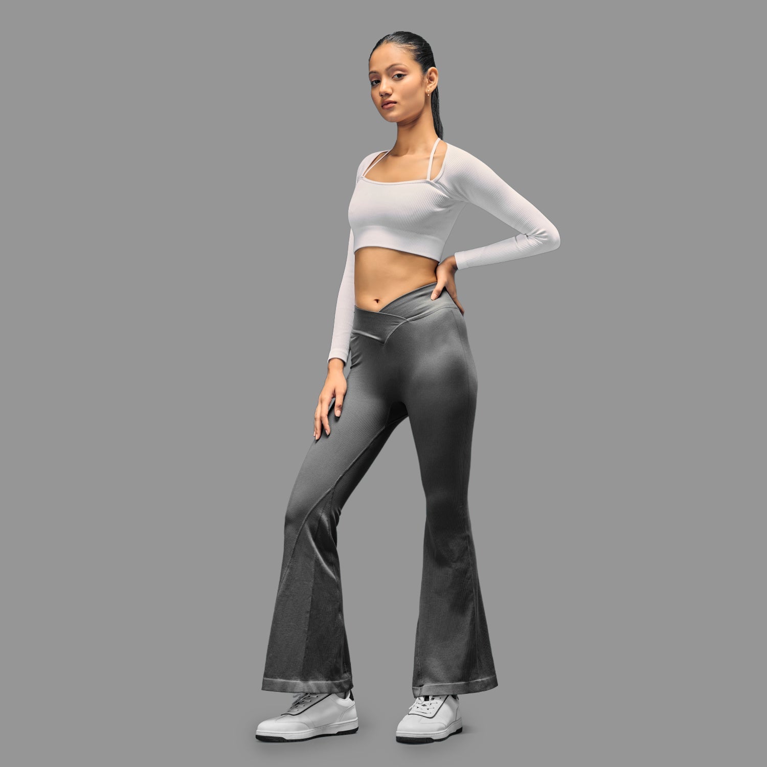 Limitless snatched Ruched back Flare Pants - Grey