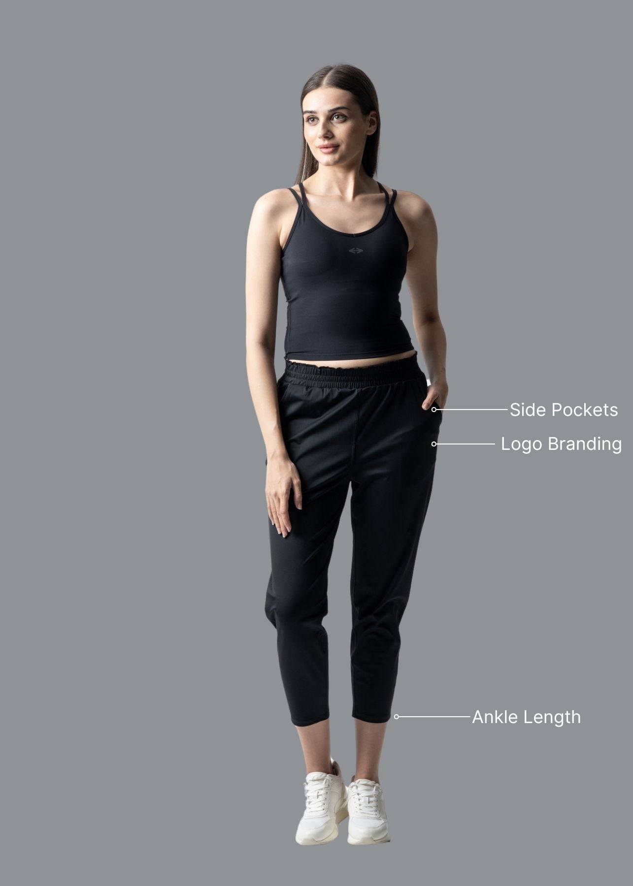 Built for both function and flair, these ankle-length pants feature side pockets for easy access to your essentials and an adjustable elastic waistband with drawcord for a secure, made-for-you fit. The sleek ankle-length cut offers a clean, modern silhouette that moves with you, whether you're training or chilling. Finished with bold branding, this piece blends performance and style effortlessly.
