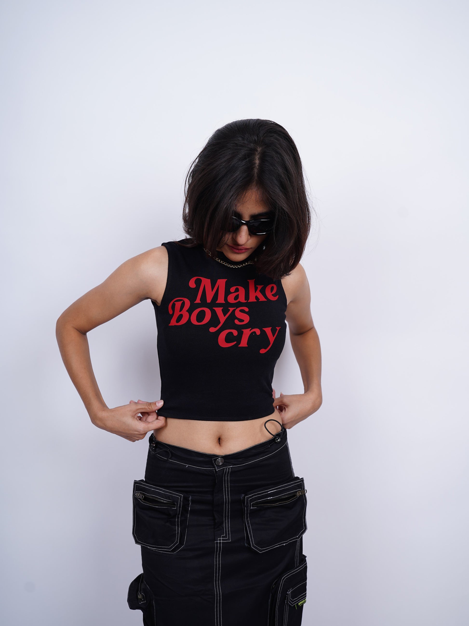 No Returns  A bold statement piece that turns heads effortlessly. Designed for the fearless trendsetter, this sleek, figure-hugging tank in classic black features striking red lettering that speaks volumes. Perfect for styling with edgy skirts, baggy cargos, or your favourite denim, this top embodies attitude and empowerment. Wear it loud, wear it proud—because making a statement has never looked this good!