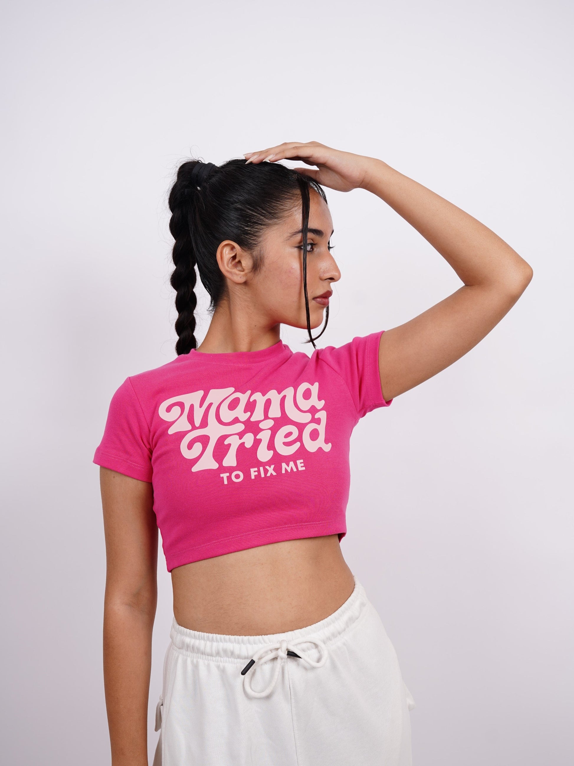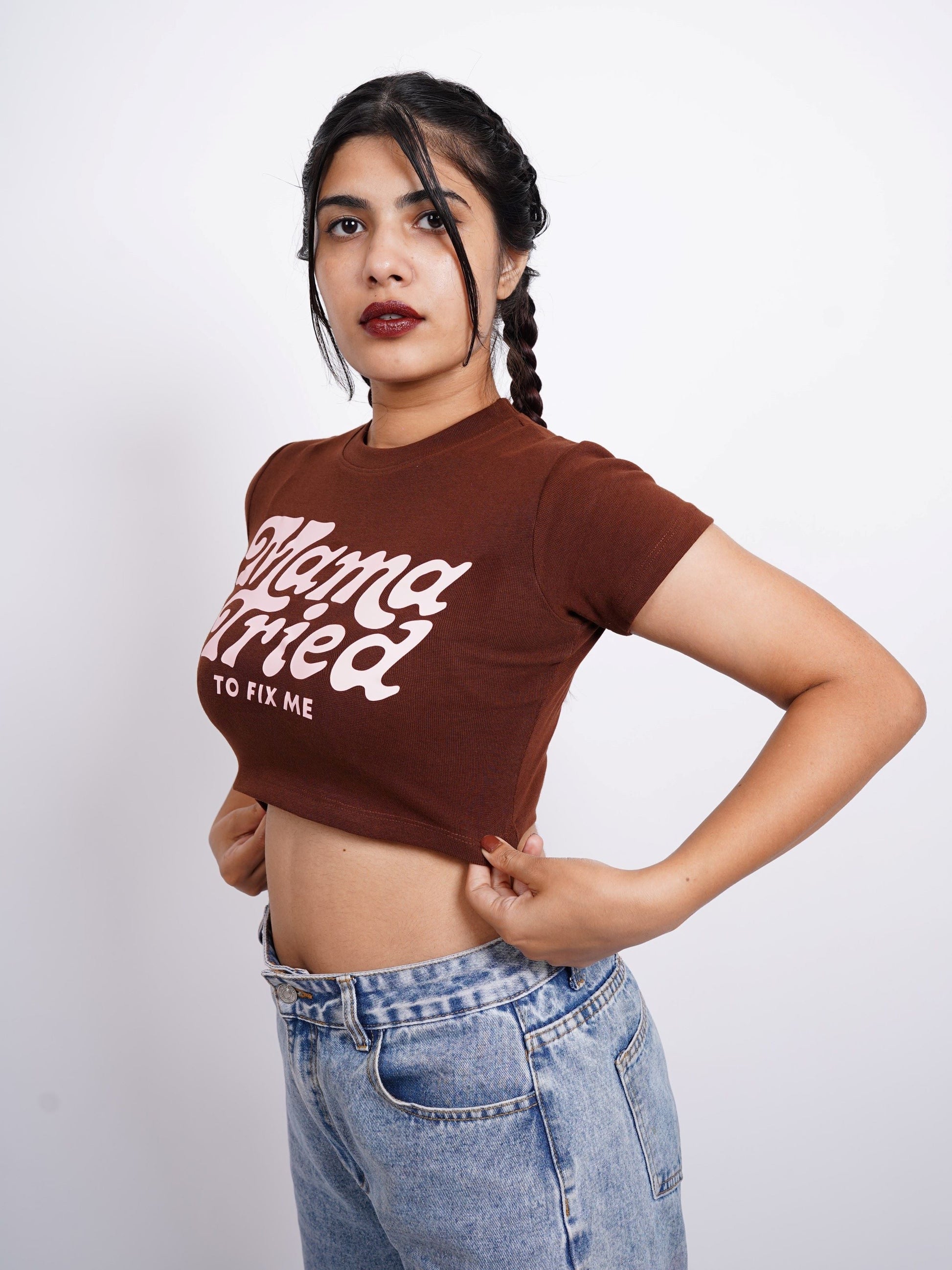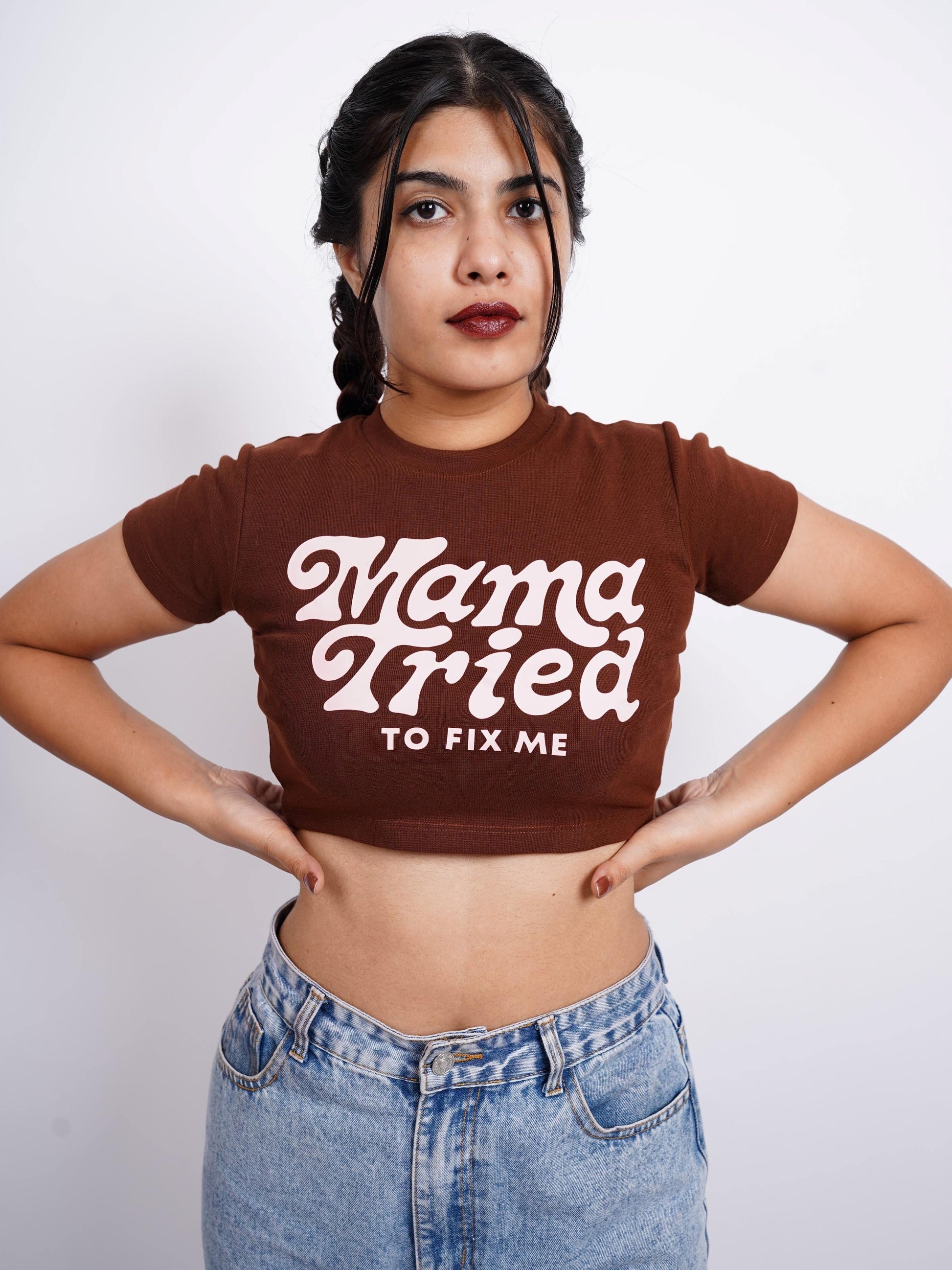 Mama tried to fix me : Burger Bae Round Neck Crop Baby Tee For Women