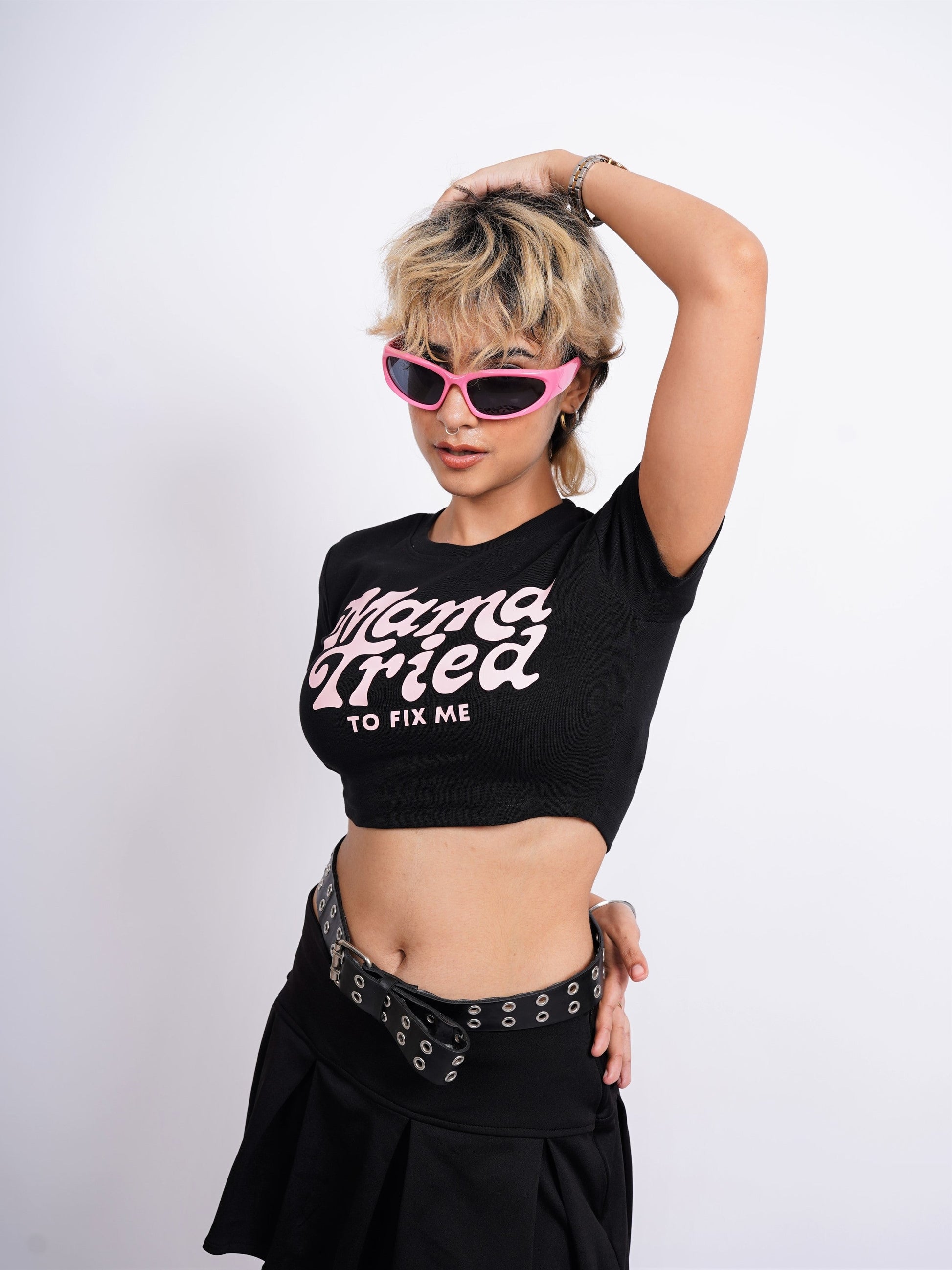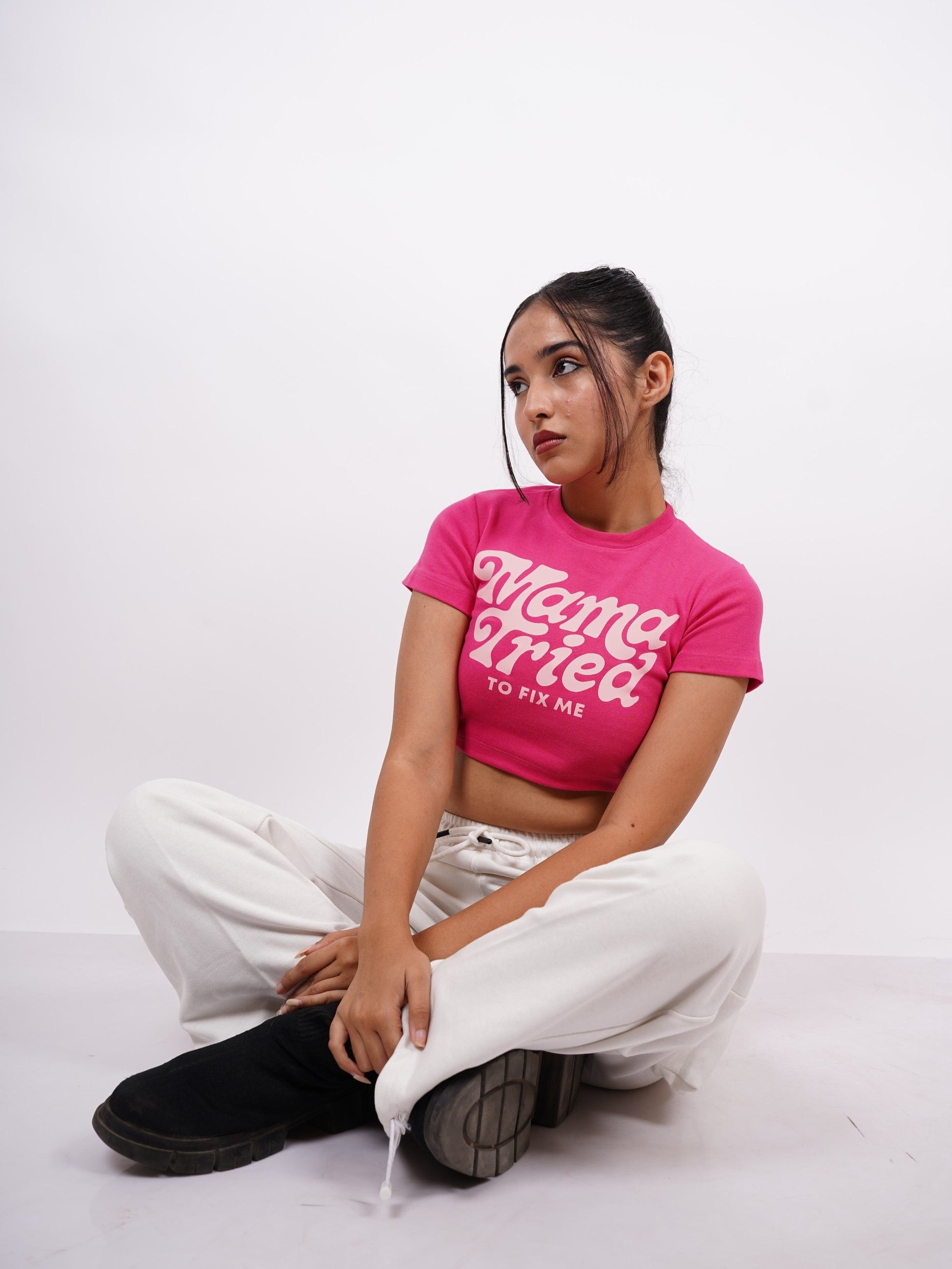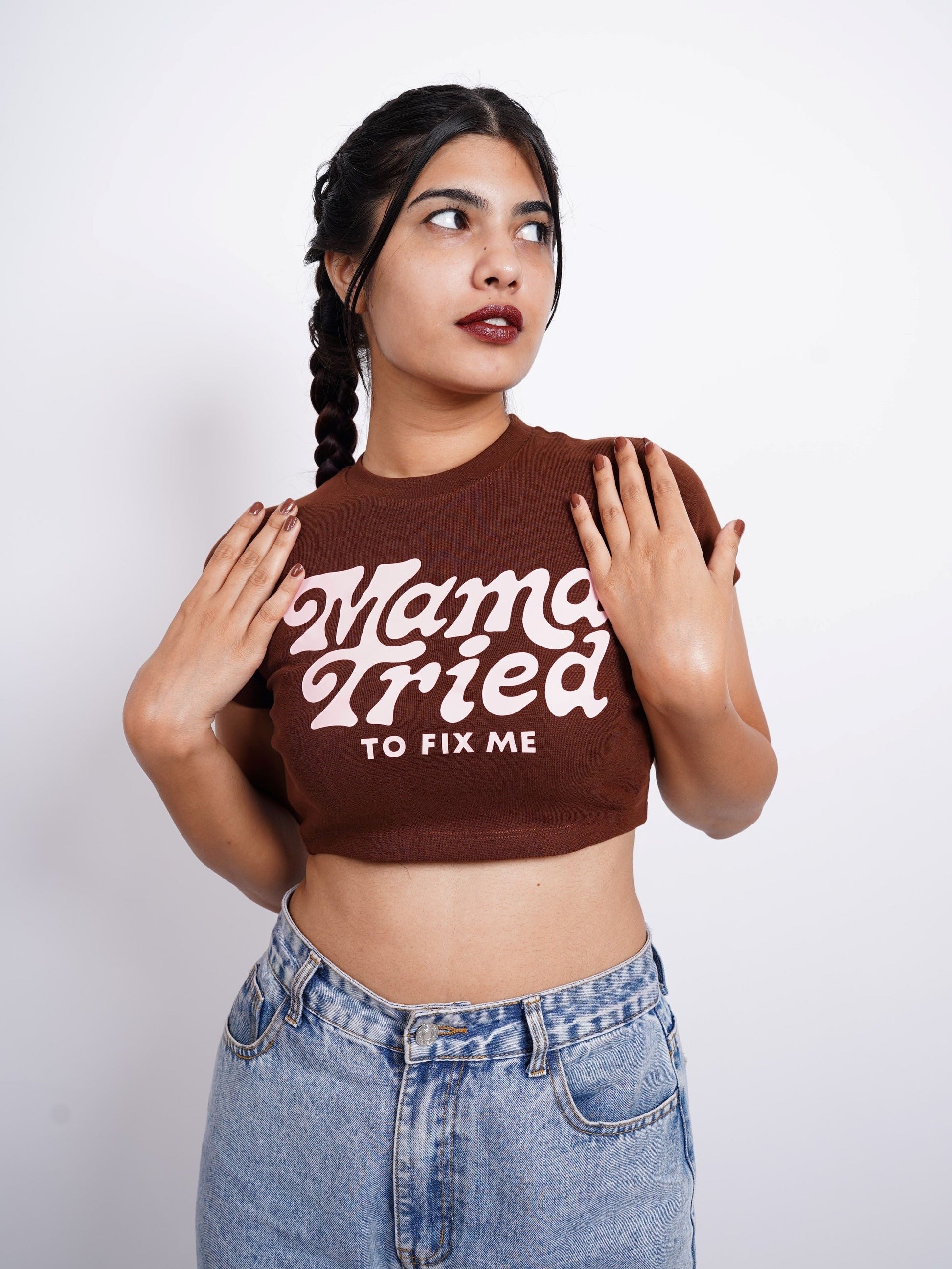 Mama tried to fix me : Burger Bae Round Neck Crop Baby Tee For Women