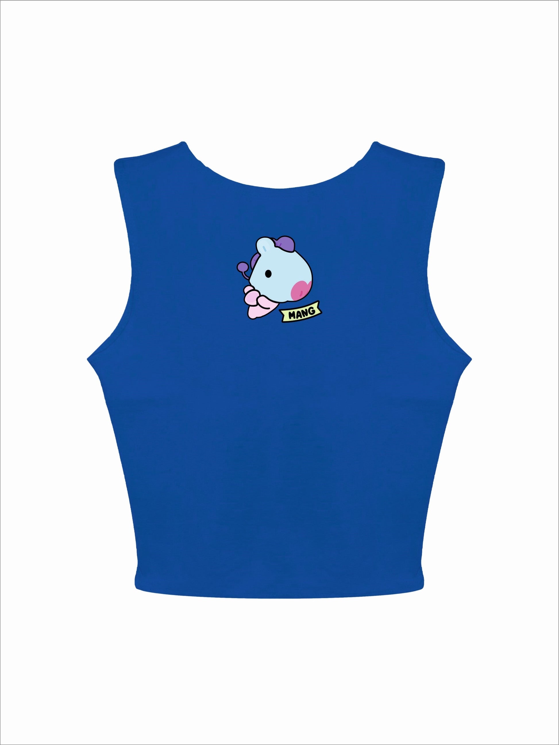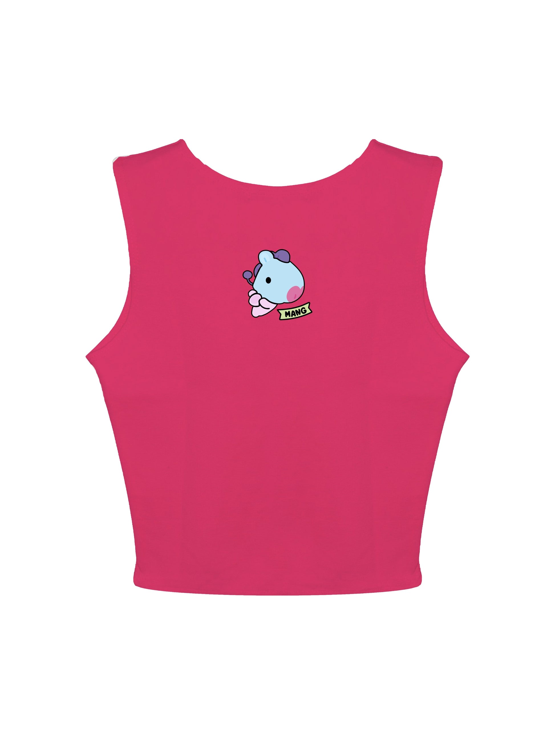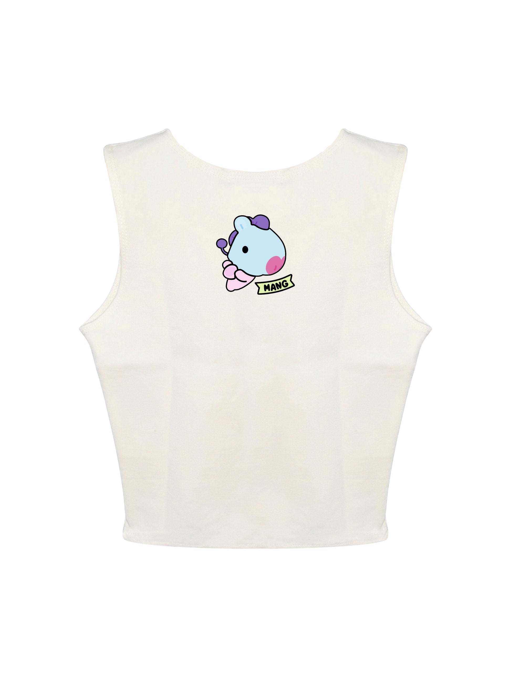 Add a playful twist to your outfit with the Mang BT21 Rachel Tank. This sleeveless, cropped tank features an adorable Mang graphic from the BT21 collection, bringing a fun and trendy vibe. These colours make it versatile and easy to style, perfect for casual or street wear looks. Made from soft, stretchable fabric, it offers a snug and comfortable fit, ideal for all-day wear.