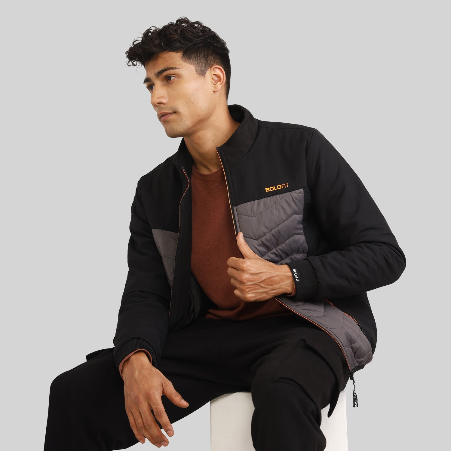 Mens Winter Bomber Jacket - Black/Grey without Cap