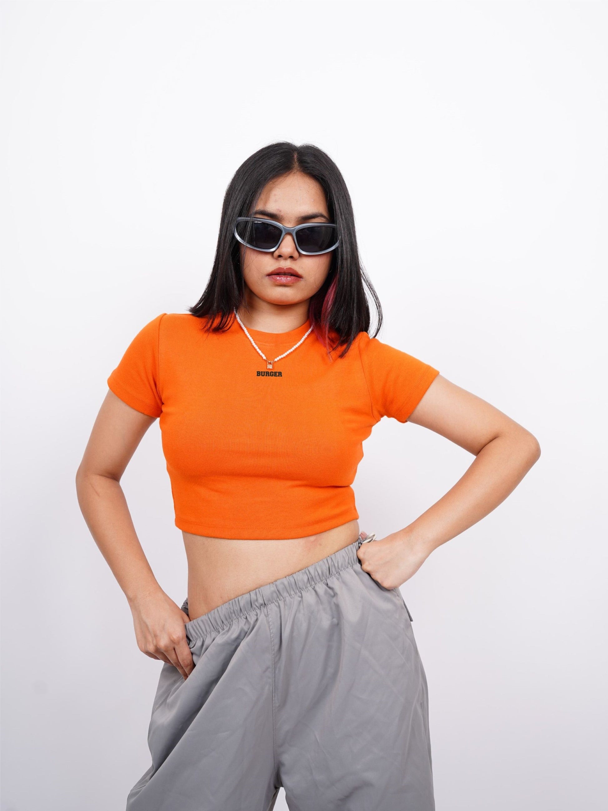 Minimal Burger logo : Baby Tee (Bright Orange) for Women