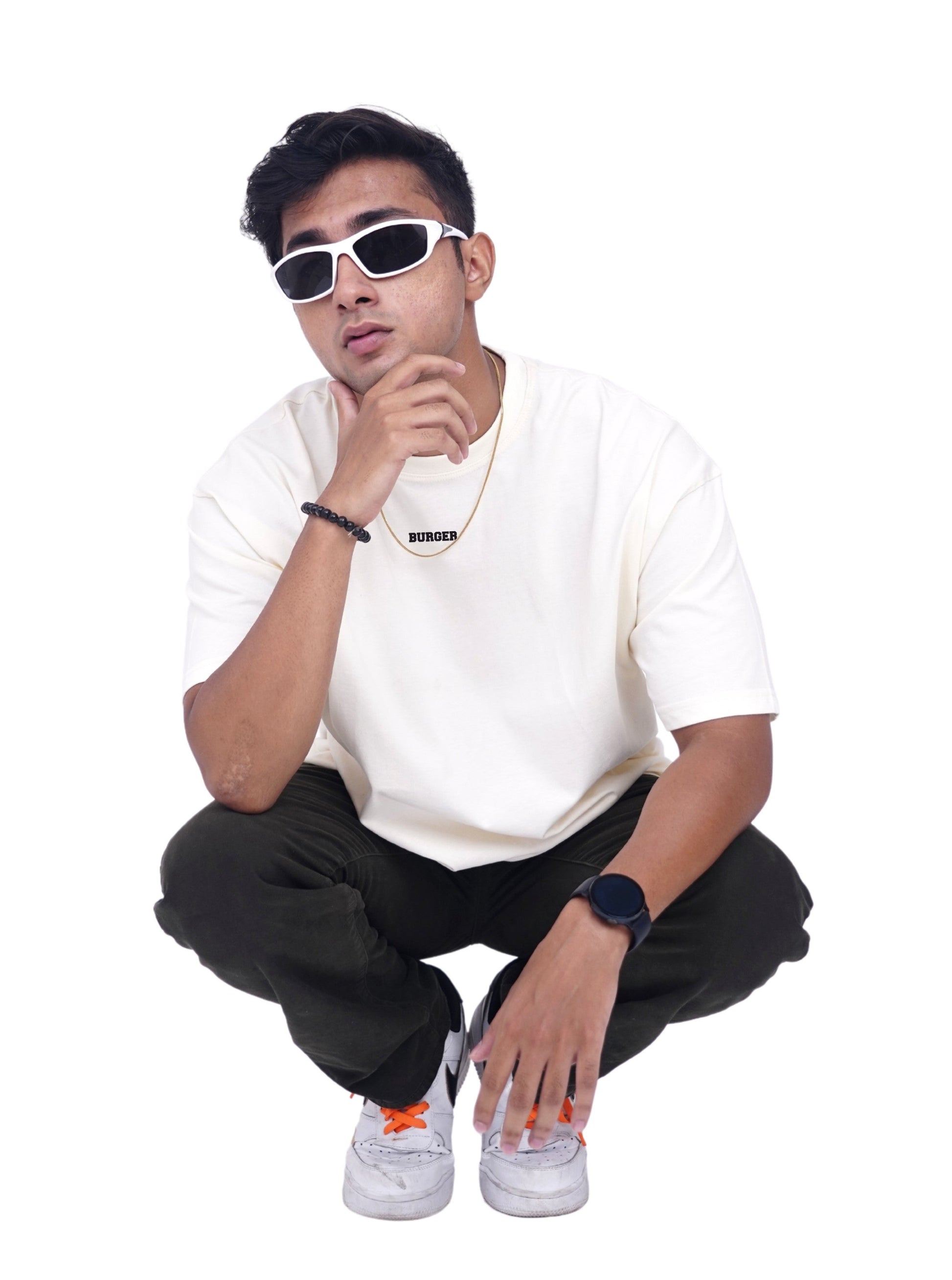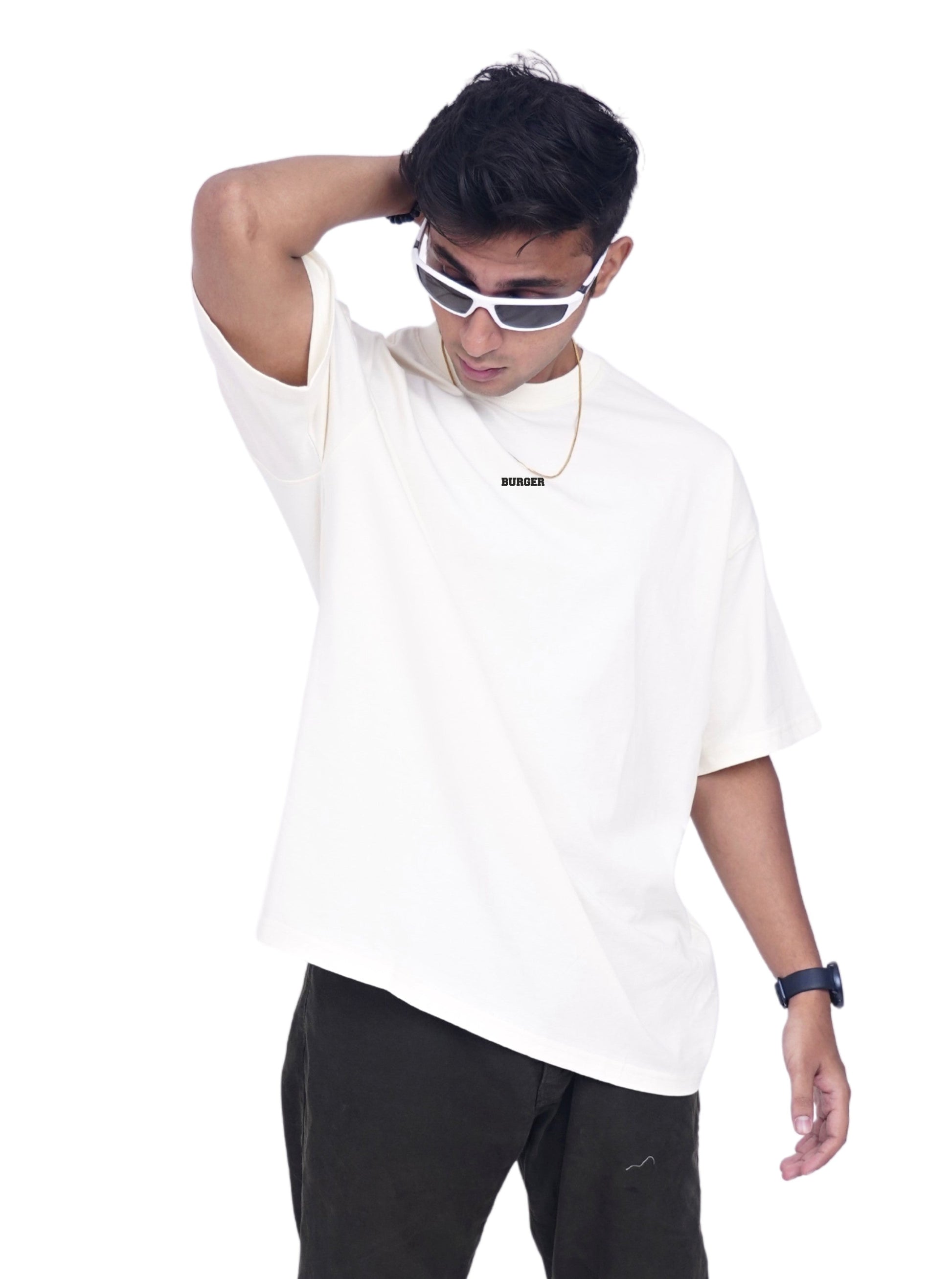 Elevate your everyday style with the Minimal Burger Logo Round Neck Drop-Sleeved Tee, designed for both men and women. Crafted from high-quality fabric, this oversized tee offers a relaxed and comfortable fit, making it perfect for effortless street wear styling.