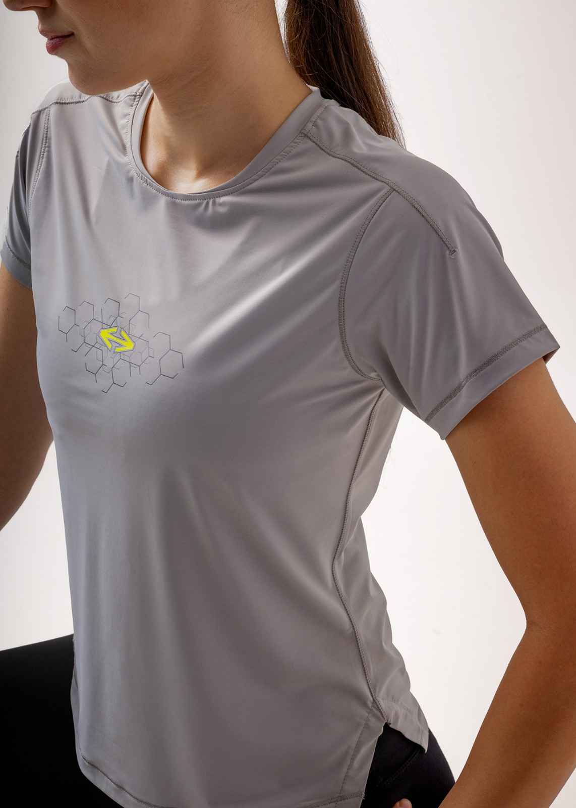 Designed for those who demand both style and function, this Graphene-Infused Training Tee offers next-level durability, breathability, and flexibility. The graphene-infused fabric enhances strength while keeping you cool and comfortable. A 4-thread flatlock stitch ensures a secure, chafe-free fit, and the open stub front neckline allows unrestricted movement. Shoulder cuts and darts provide enhanced mobility, while side slits maximize flexibility for intense workouts. With reflective logo branding for visibility and a bold graphic design, this tee is the perfect blend of innovation and athletic style.