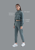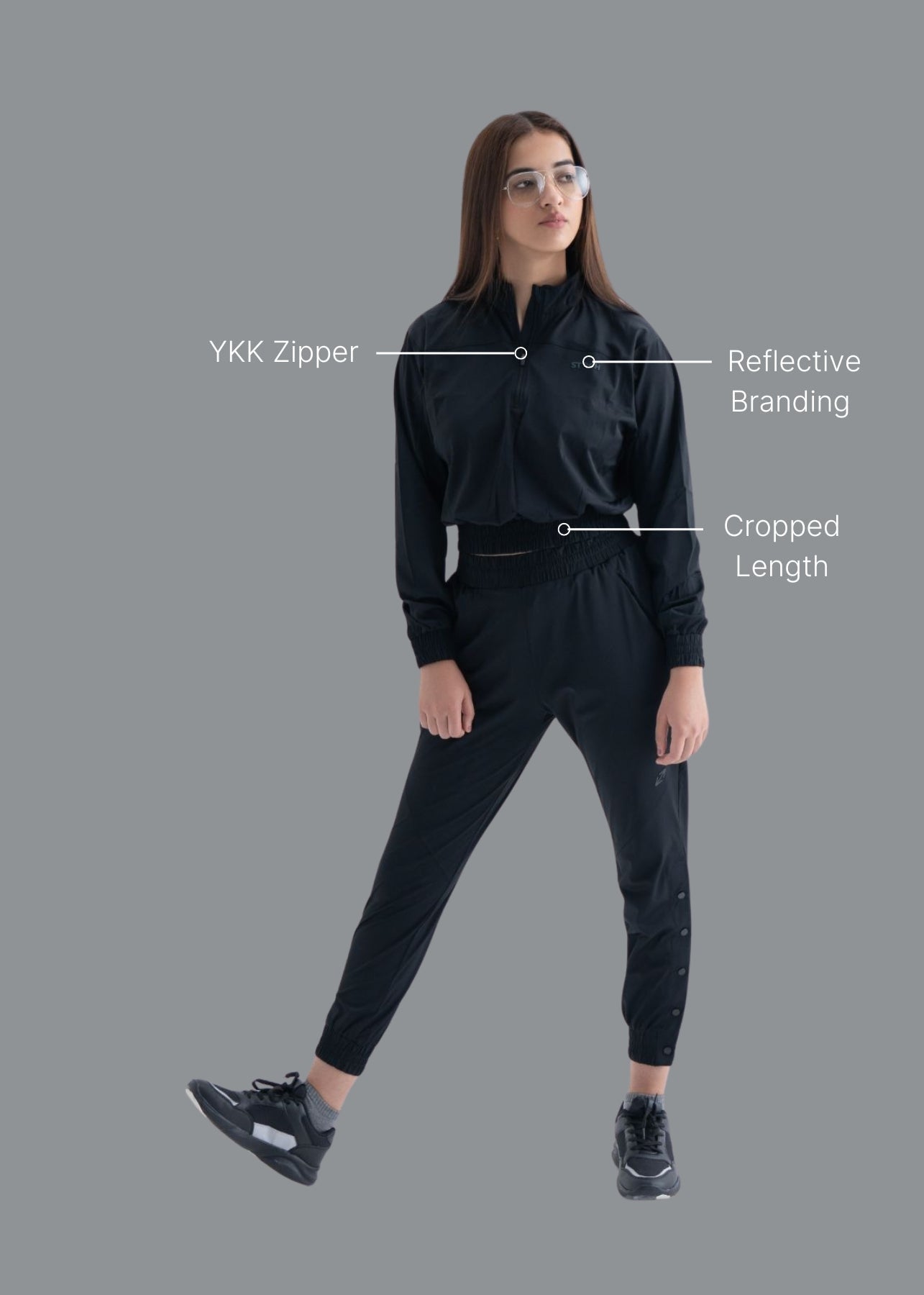 This cropped jacket combines durability and function with a bold, modern look. Featuring a secure YKK zipper opening, ergonomic paneling for enhanced mobility, and reflective branding for increased visibility, it’s built for both style and performance. The cropped length adds a trendy edge, making it perfect for layering over your activewear or everyday outfits.