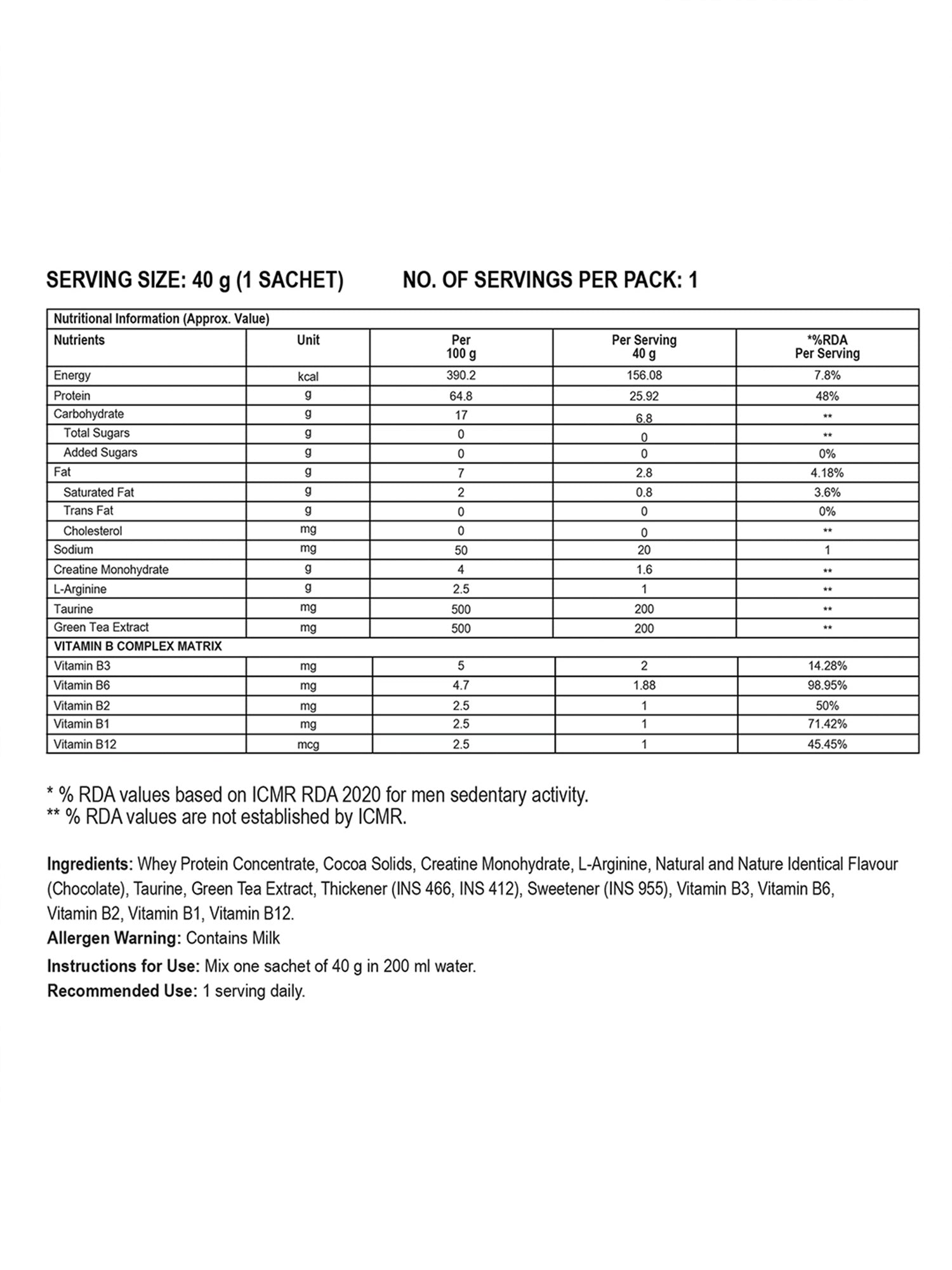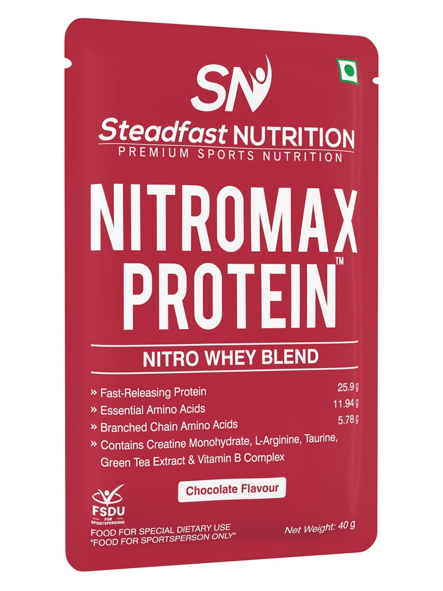 Nitromax Protein provides fast-absorbing whey protein, creatine monohydrate, L-arginine, green tea extract, and taurine, which improve exercise performance by increasing muscle strength and supporting muscle recovery.