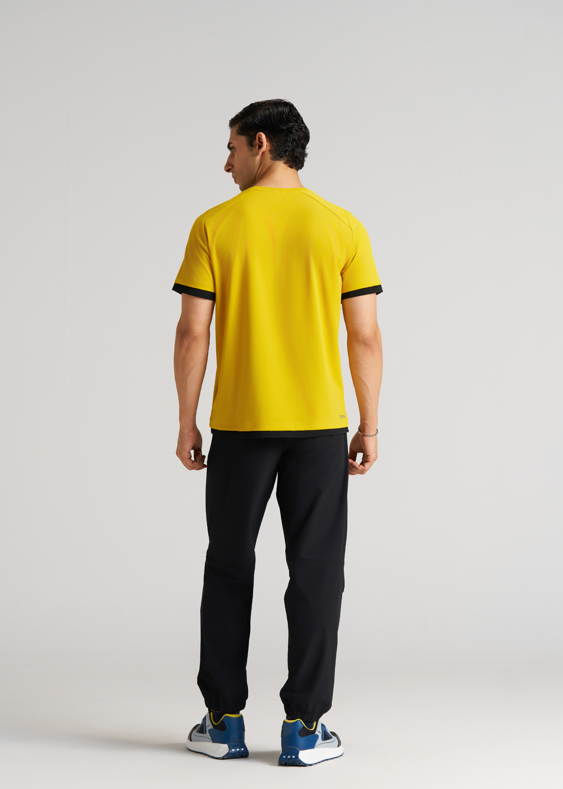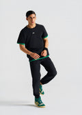 This t-shirt is tailored for gym and football enthusiasts, combining functionality with a sleek design. The contrast color cuff and bottom hem add a stylish accent, while the STRCH silicon logo on the front makes a bold statement. A reflective logo on the back ensures enhanced visibility during low-light activities, perfect for outdoor training sessions. Crafted with moisture-wicking fabric, it keeps you cool and comfortable by promoting breathability. The round neck design allows a full range of motion, making it ideal for intense workouts and active sports.