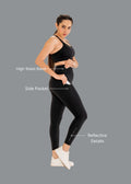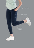 These leggings are designed for both performance and style, featuring a high-waist cut for enhanced support and a flattering fit that stays securely in place throughout your workout or daily activities. Reflective logo stickers on the front and back increase visibility in low-light conditions, making them ideal for evening runs, cycling, or walking. With convenient side pockets, you can store small essentials like keys or a phone while remaining hands-free. The elasticated waistband with a drawstring ensures a custom fit for all body types. Crafted from memory recovery fabric, these leggings offer lasting comfort, shape retention, and support, adapting to your body for a smooth, supportive fit.