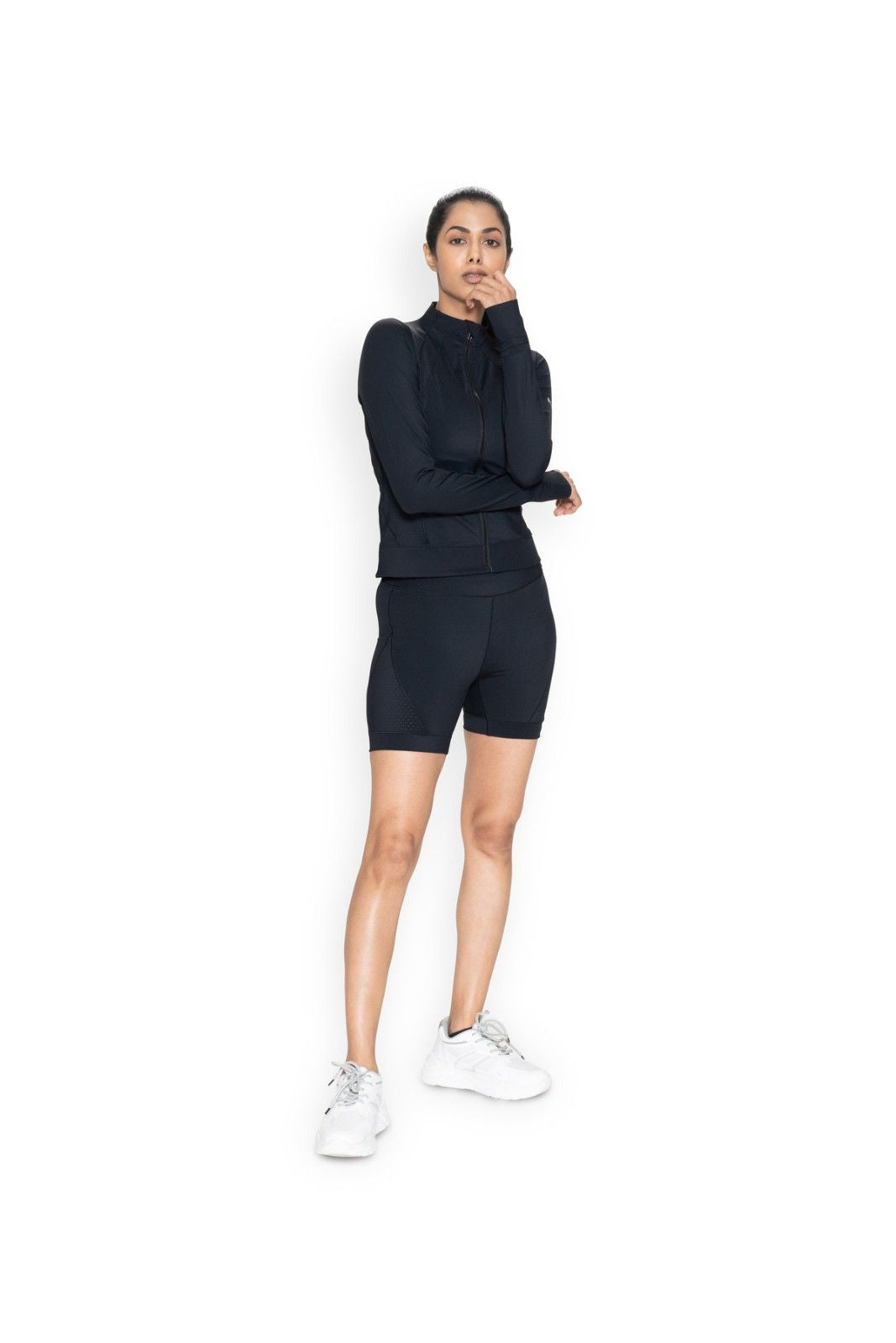 Elevate your performance with our premium jacket, designed for functionality and style. Featuring a high collar for added coverage and a full-zip opening for effortless wear, it’s perfect for active lifestyles. Laser-cut holes on the front and back ensure optimal breathability, while reflective logo branding enhances visibility in low-light conditions. The thumbholes and sleeve hand covers provide added mobility and protection. Crafted from 76% recycled nylon and 24% spandex, this jacket combines sustainability with comfort and stretch.