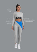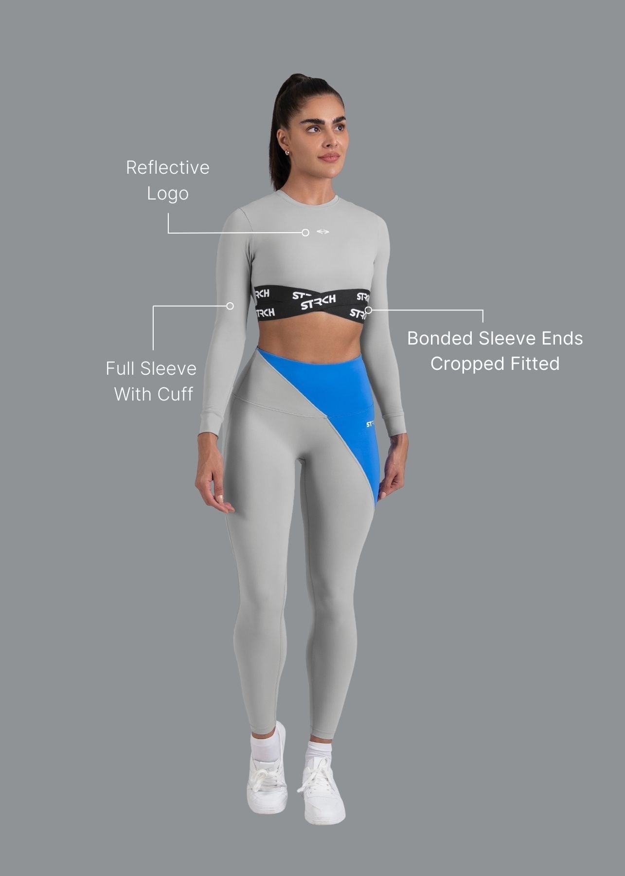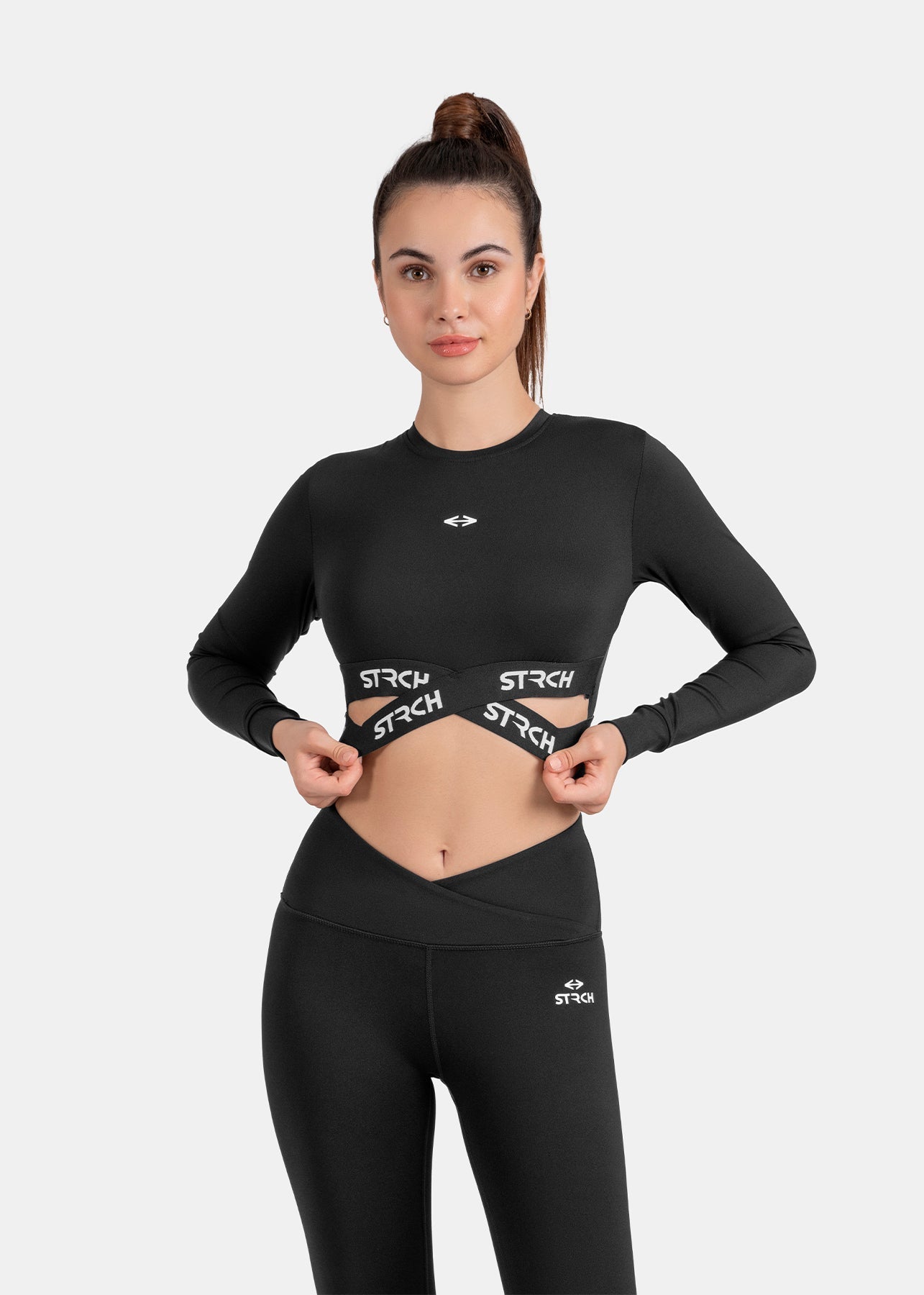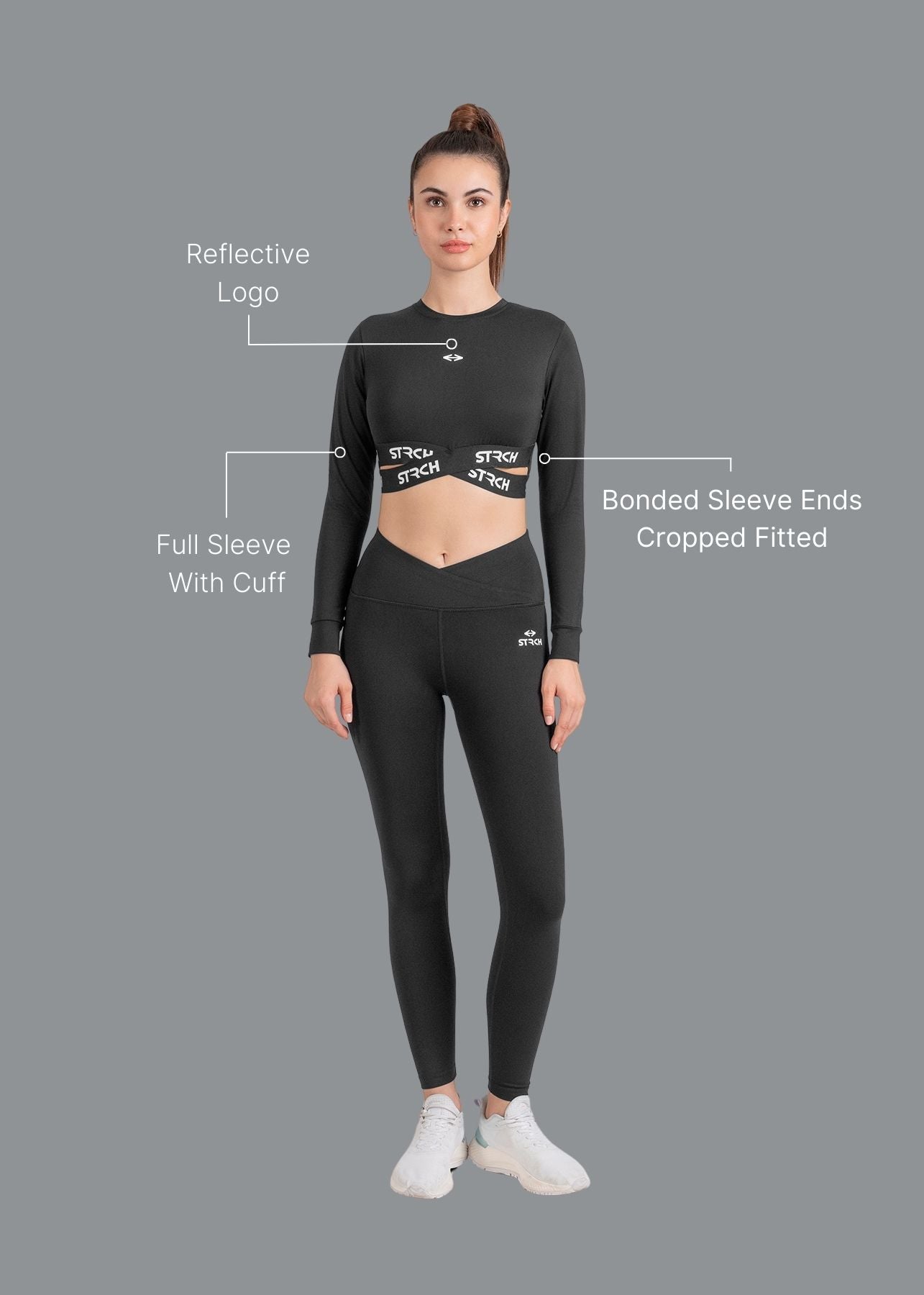 Introducing our full-sleeved crop top with overlap elastic support, designed to boost your confidence during your active lifestyle. Crafted from breathable, flexible, and sweat-wicking fabric, it's ideal for HIIT or weight training sessions. Versatile and stylish, this crop top is your ultimate choice for running, cycling, gym workouts, football, hockey, yoga, and pilates, ensuring comfort and performance in every move.