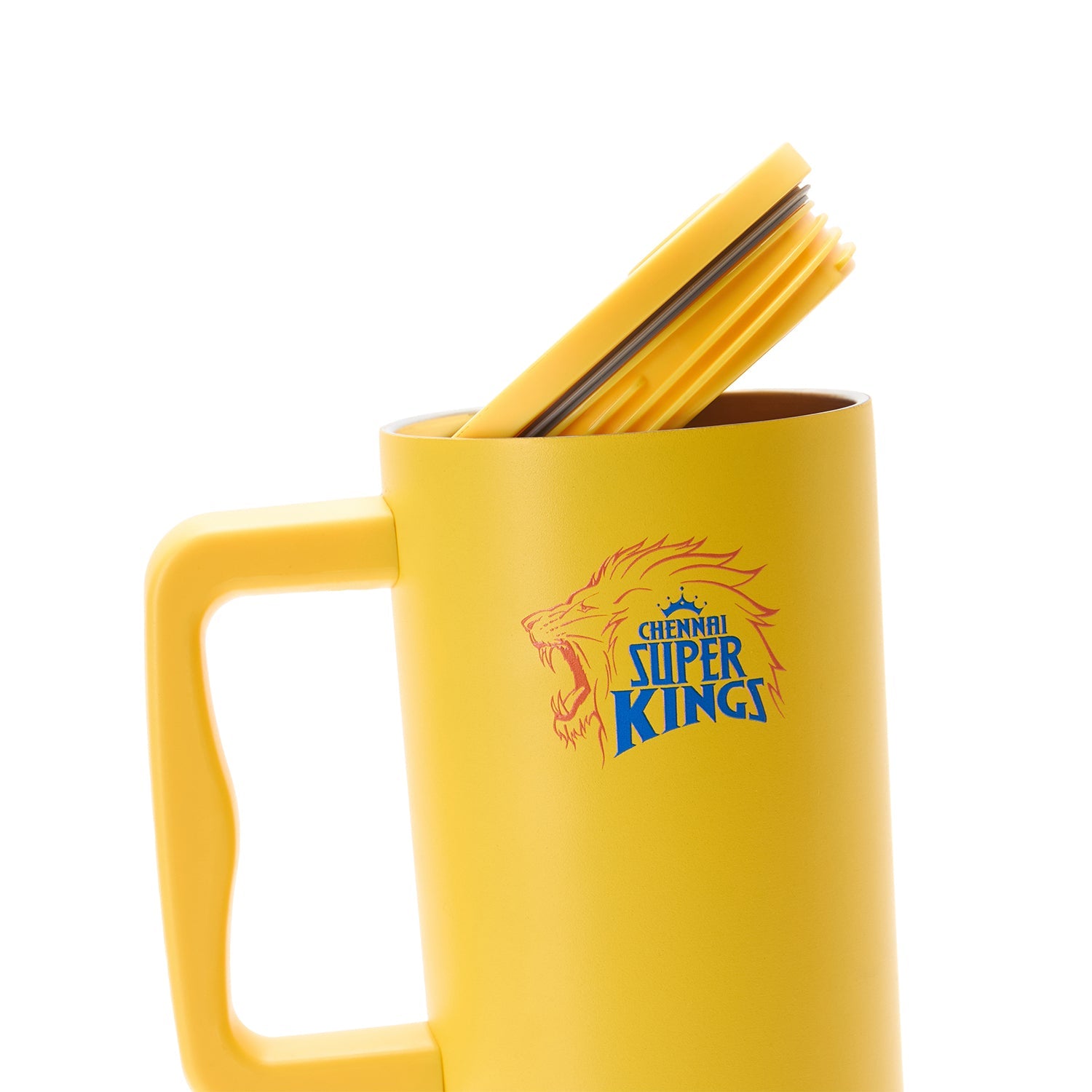 Stay yellow, bold, and unstoppable with the Official CSK Chugger. Built with Yellove for every die-hard Super Kings fan. With its sleek CSK branding, leakproof lid and ergonomic handle, it creates badge of loyalty.