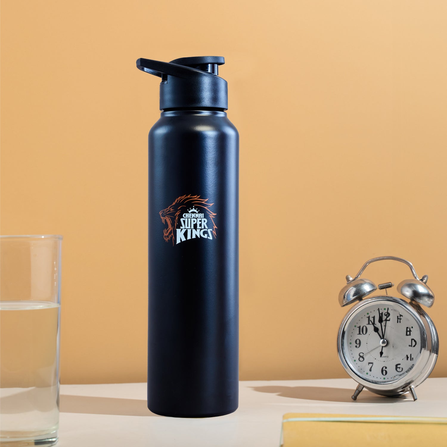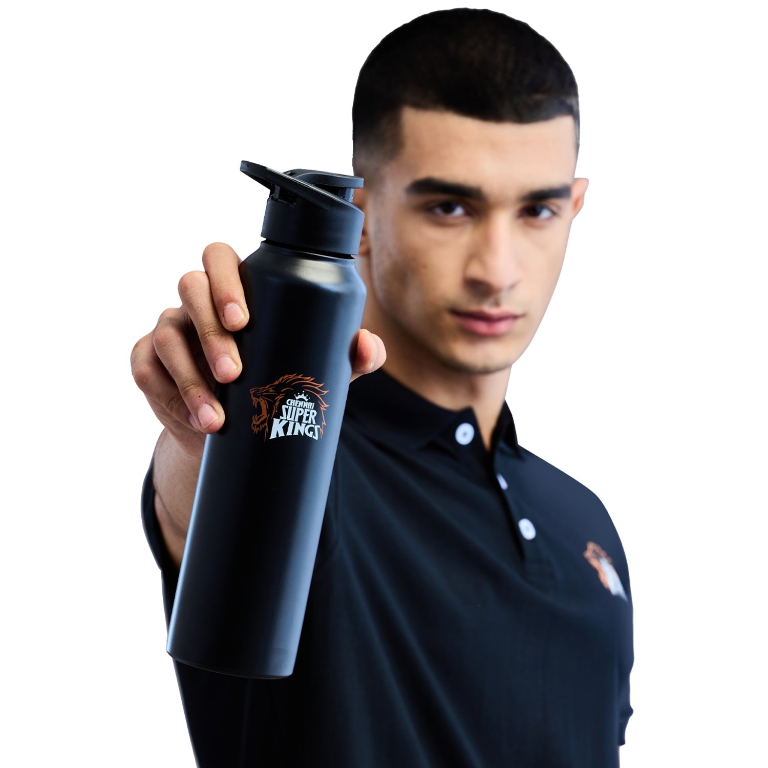 Hydrate like a champion with our stylish official CSK Ranger Water Bottle. Decked out in the iconic CSK colours, complete with the CSK logo, this bottle is your perfect companion for staying energized and focused, whether you're giving your all on the field or pushing limits in the gym. This 1ltr steel bottle is your perfect partner in hydration.
