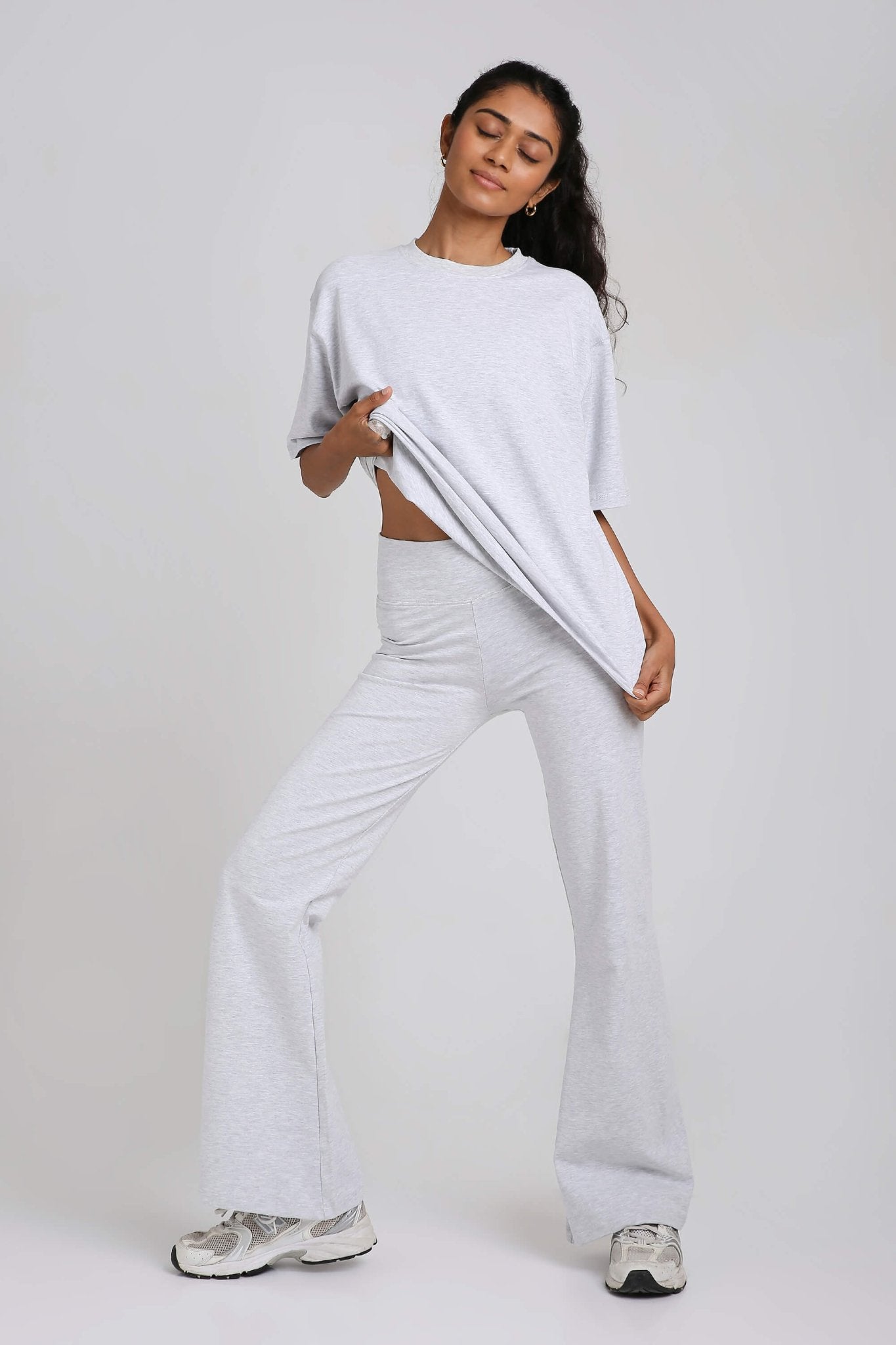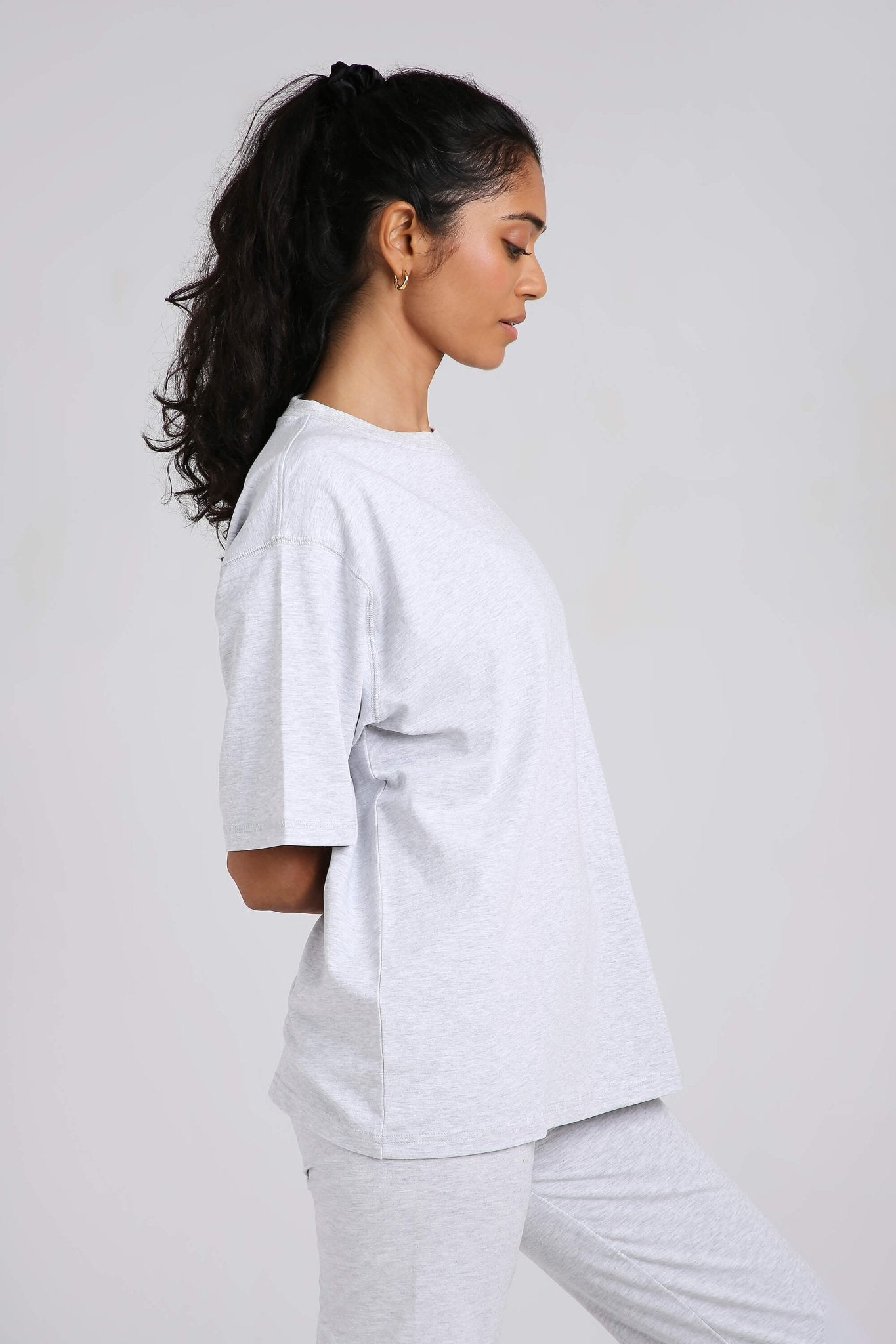 Styling tip: Half-tuck into high-waisted jeans for a clean streetwear vibe, knot at the waist over bike shorts for a workout-to-brunch fit, or wear loose with our Oversized Loungers for a monochrome moment.