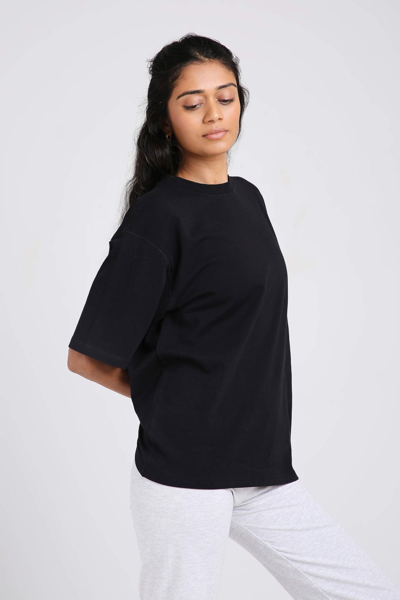 Styling tip: Half-tuck into high-waisted jeans for a clean streetwear vibe, knot at the waist over bike shorts for a workout-to-brunch fit, or wear loose with our Oversized Loungers for a monochrome moment.