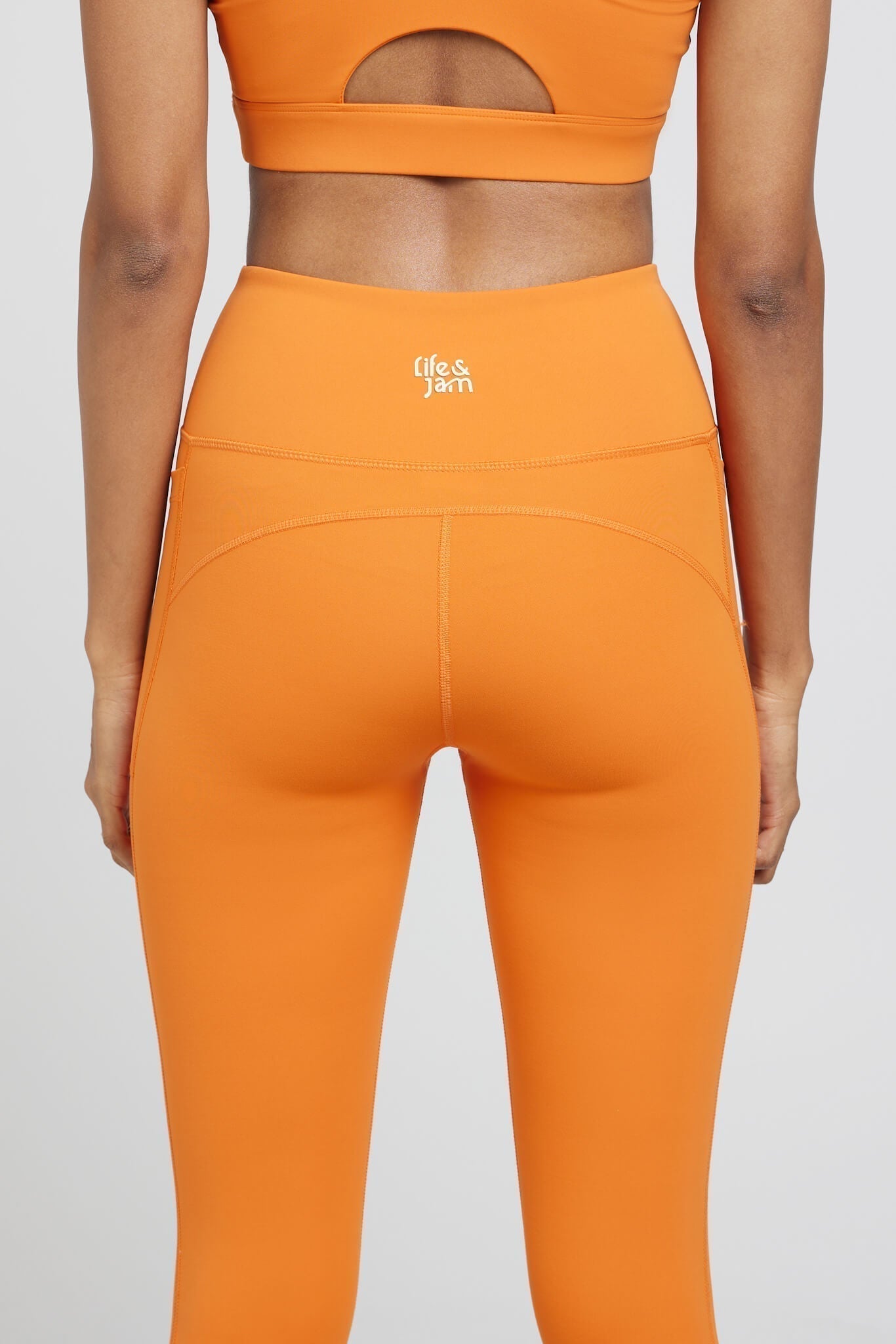 Styling Tip: Pair these leggings with a fitted sports bra or tank for a streamlined look during your workout, or throw on an oversized hoodie post-workout for a relaxed vibe. The vibrant orange makes it easy to pair with neutrals or other bold colors for a standout gym look.