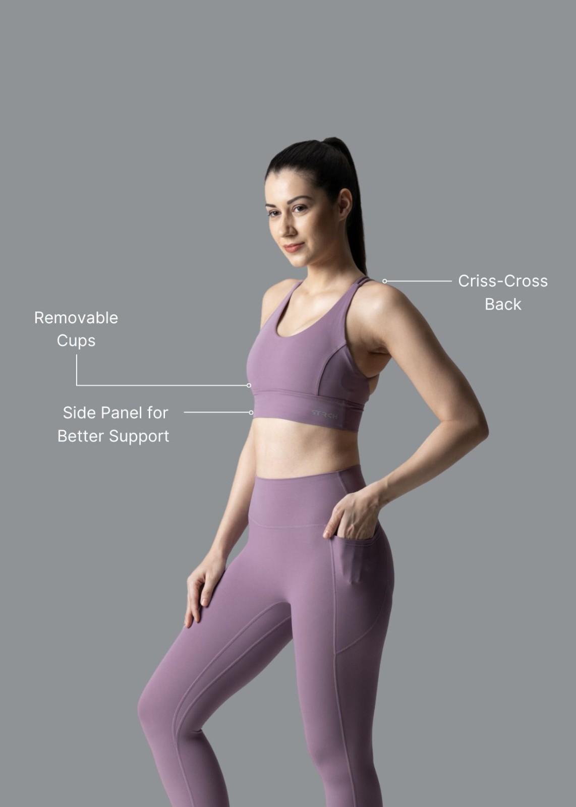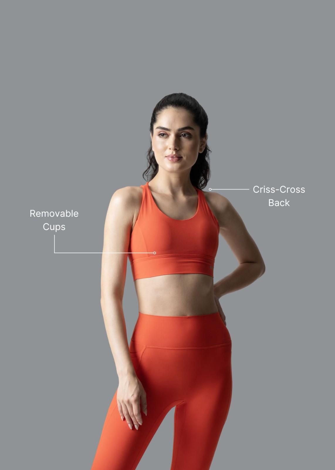 Engineered for performance and style, this sports bra features a criss-cross back design that not only adds a trendy edge but also boosts support and freedom of movement. Built to offer high support, it's ideal for intense workouts, while the side panels enhance shaping and stability. Removable cups allow you to customize your fit and comfort, and sleek branding completes the look with a sporty, polished touch.