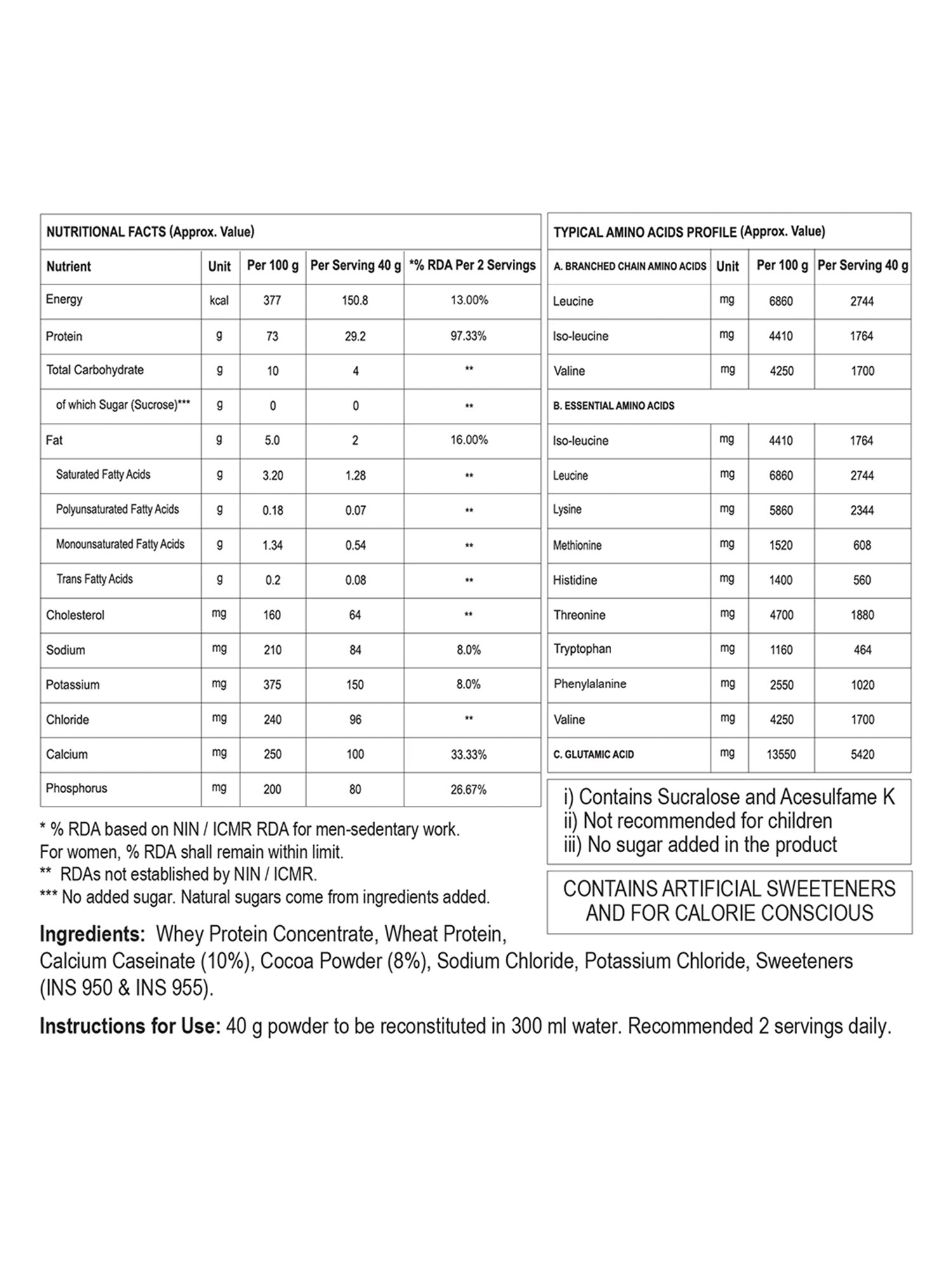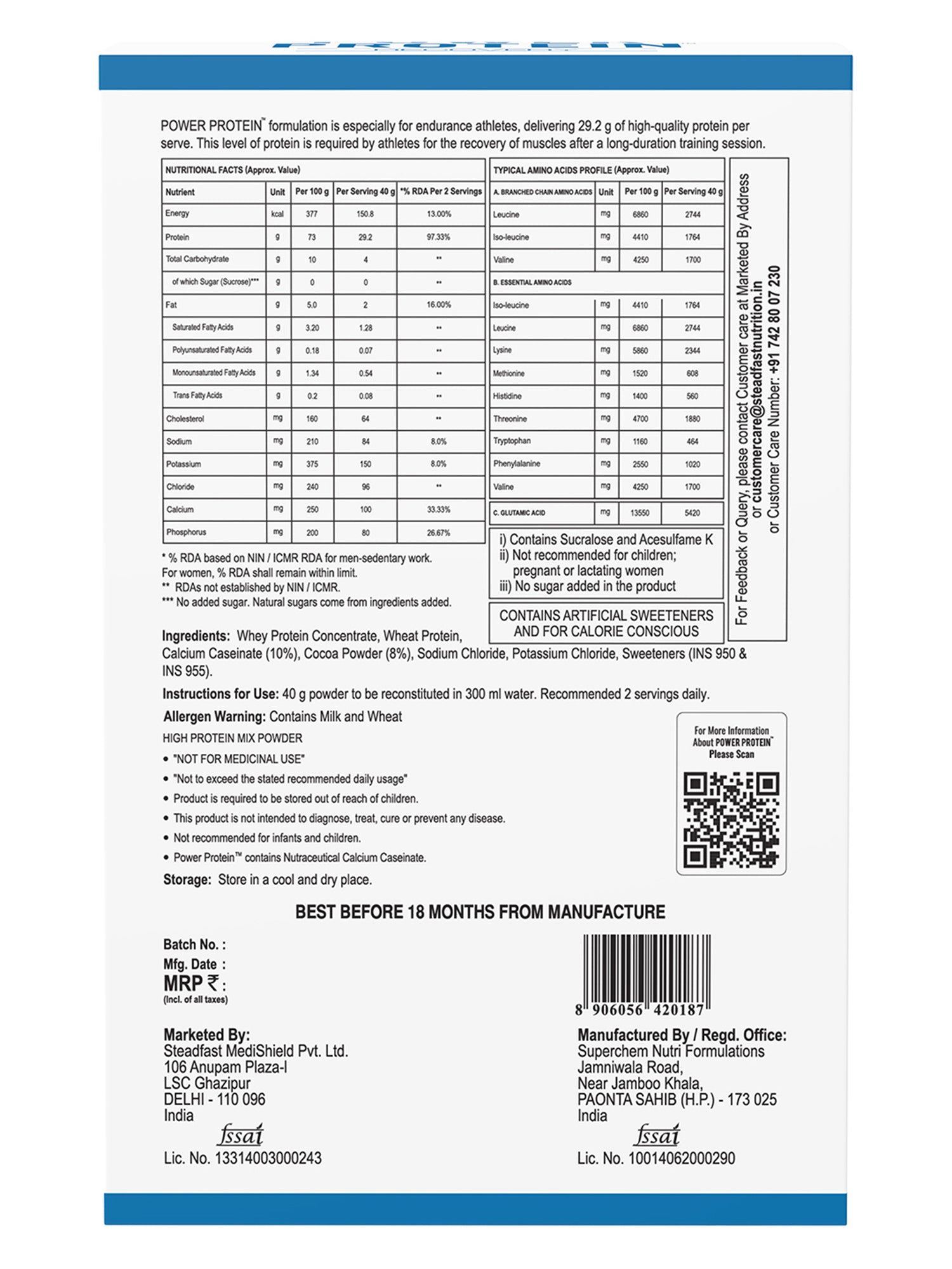 Power Protein Glutamine Essential Natural Cocoa Powder 6 Sachets 240g