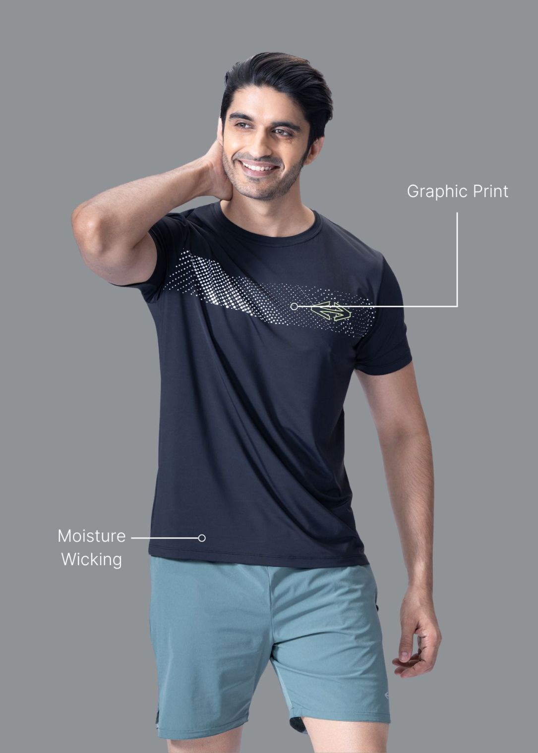 Upgrade your workout wardrobe with this performance t-shirt, featuring a standout graphic print that adds a bold touch to your look. The open, relaxed neckline enhances breathability and comfort, making it ideal for intense workouts or casual wear. Finished with a reflective detail, it ensures a sleek, sporty vibe while keeping you visible in low-light conditions.