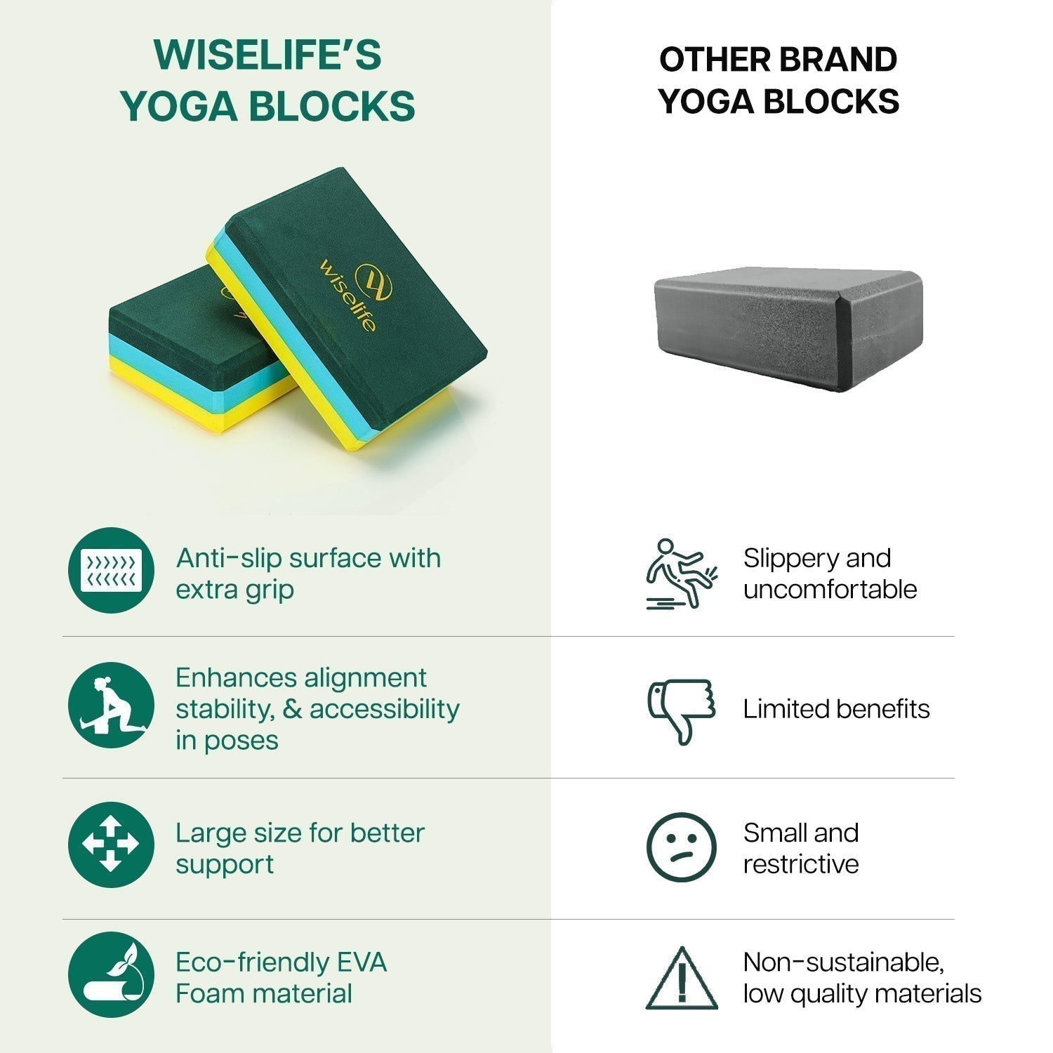 - ENHANCE YOUR YOGA & WORKOUT- Elevate your Performance level with WiseLife Pro Yoga Blocks. Deepens, elongate your stretches and aligns your posture perfectly, fit for all fitness levels.