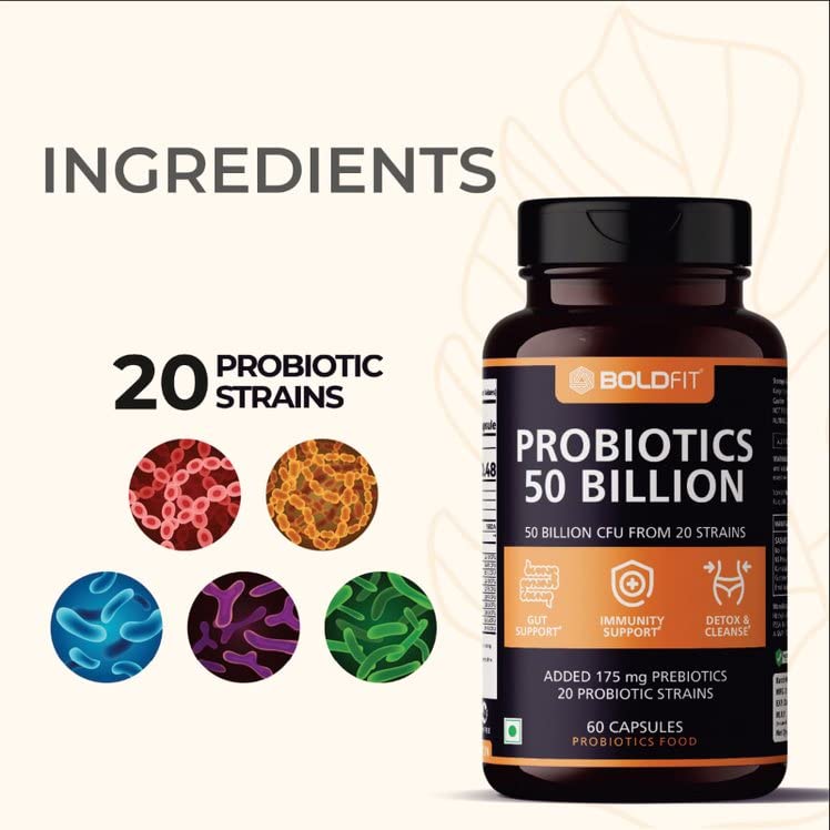 Boost your gut health and overall well-being with Boldfit Probiotics 50 Billion CFU. Designed for men and women, these probiotics maintain a healthy gut microbiome and aid in reducing bloating and digestive discomfort.