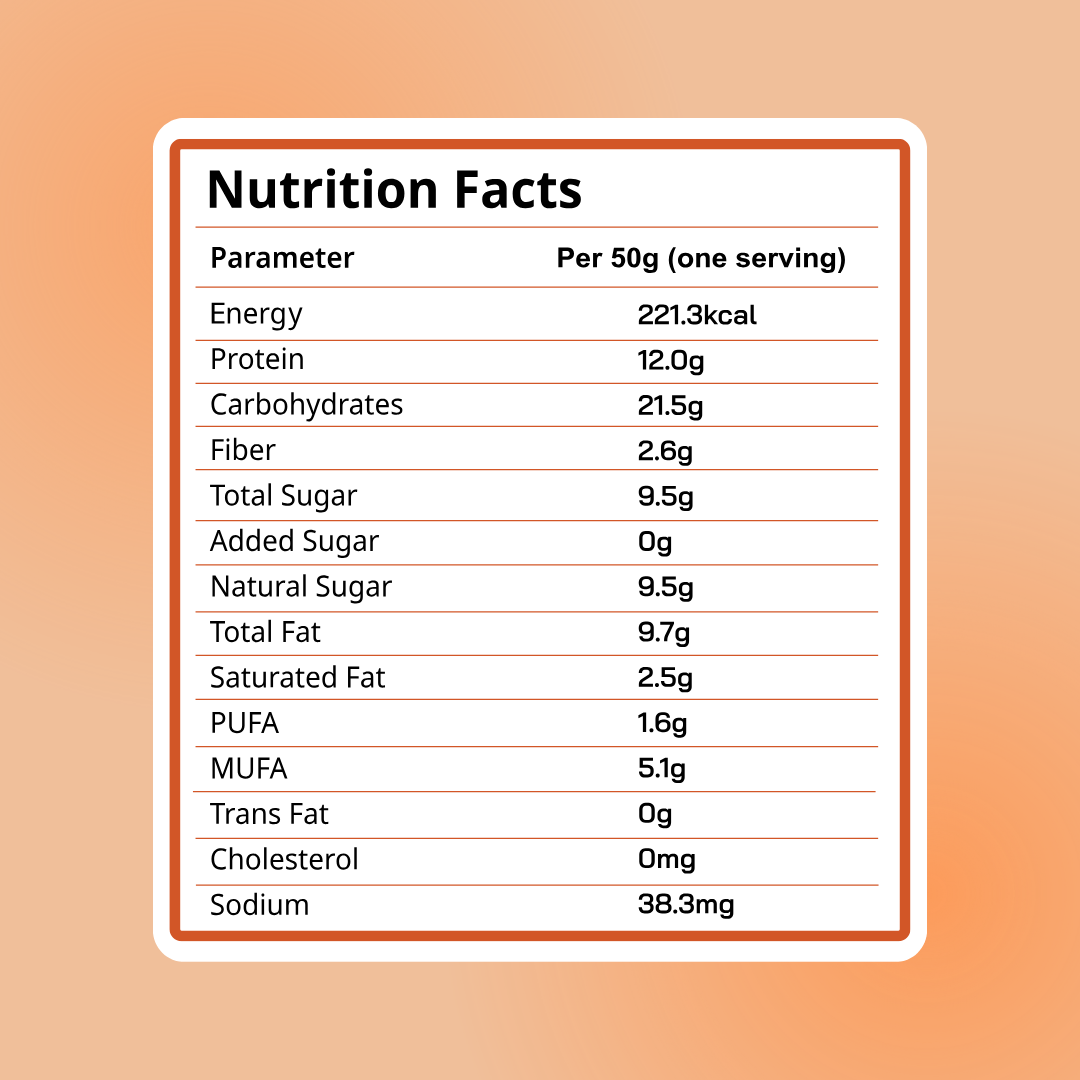 Each bar weighs 50g, delivering 12g of protein in every bite. Perfect as a post-meal dessert, a pre/post-workout snack, or a sweet fix for your late-night cravings. Indulgent, satisfying, and crafted to feel like a treat!